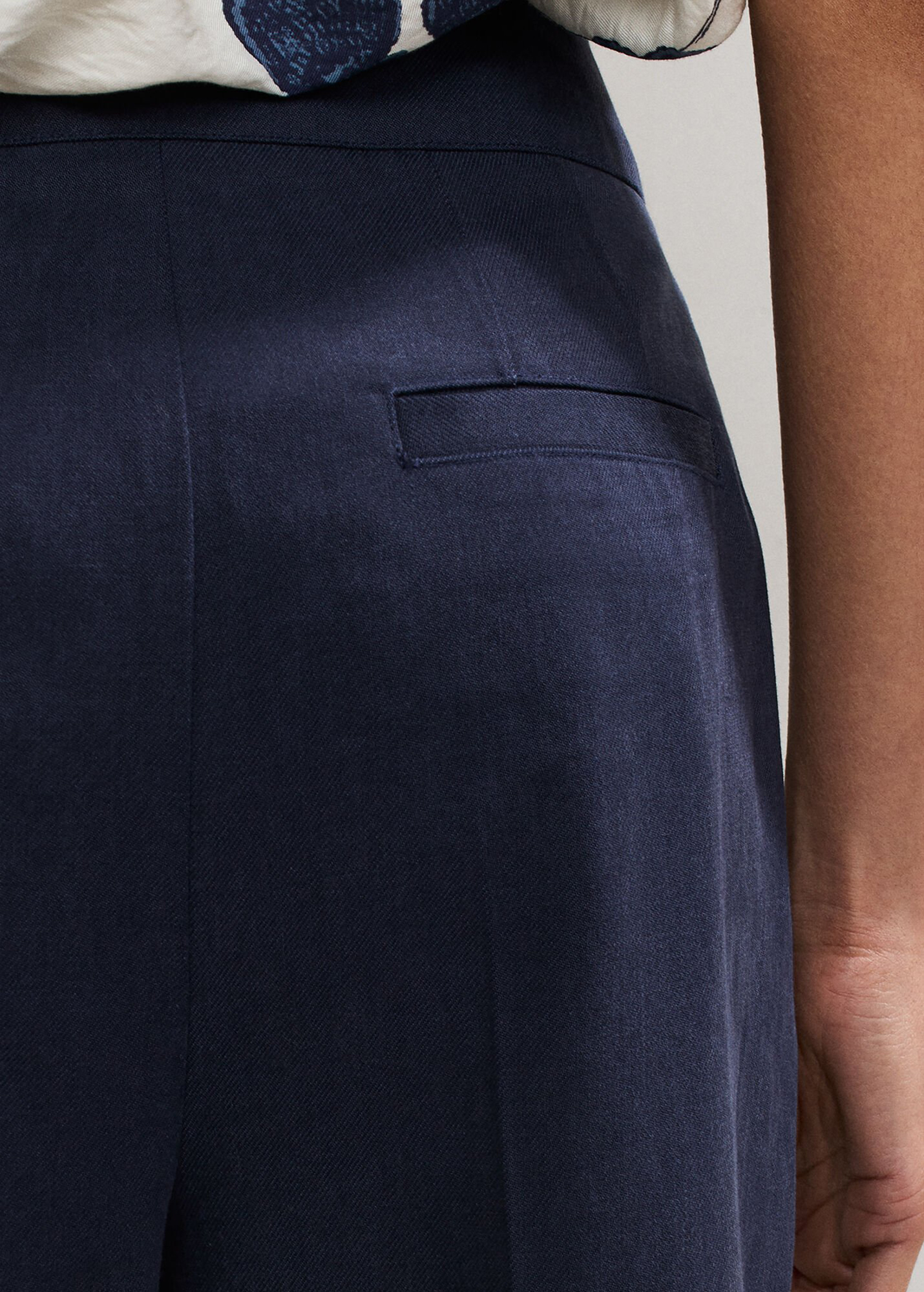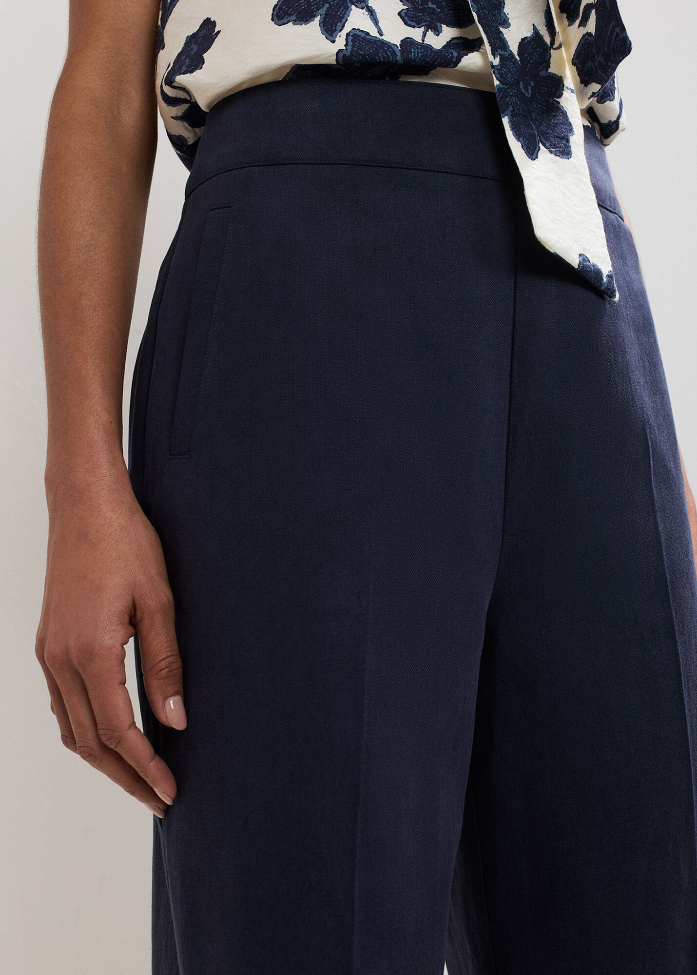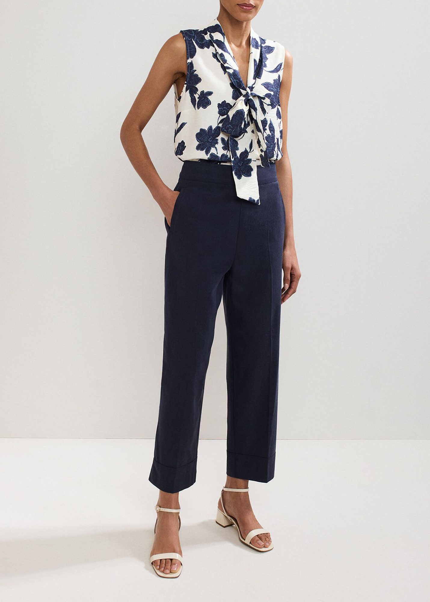 Every woman needs a classic pair of smart, 100% cotton trousers in her wardrobe. Designed for versatility and comfort, these navy trousers are a timeless cigarette shape. With expertly placed darts and a modern crop at the ankle, great for styling for both work and the weekend.