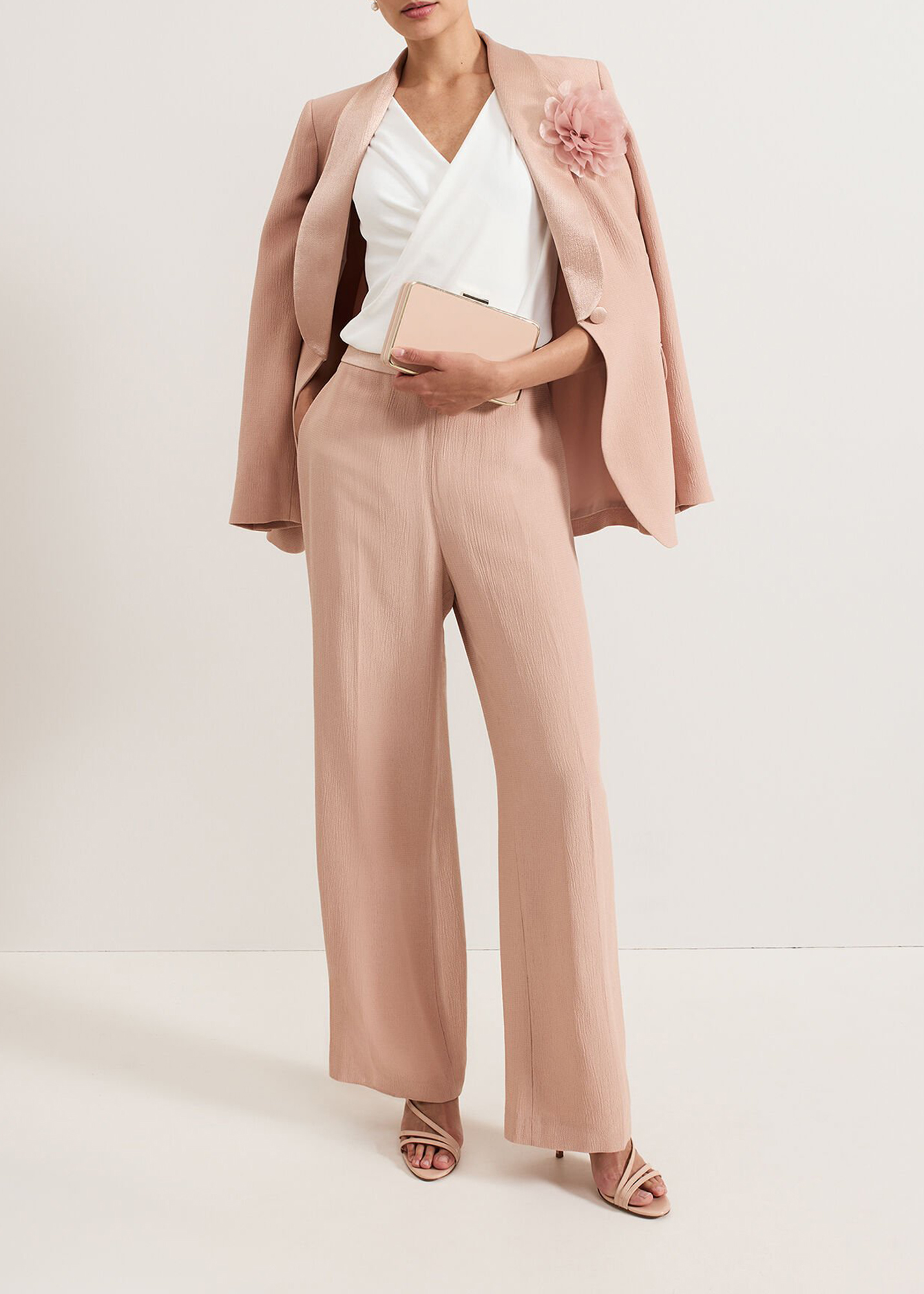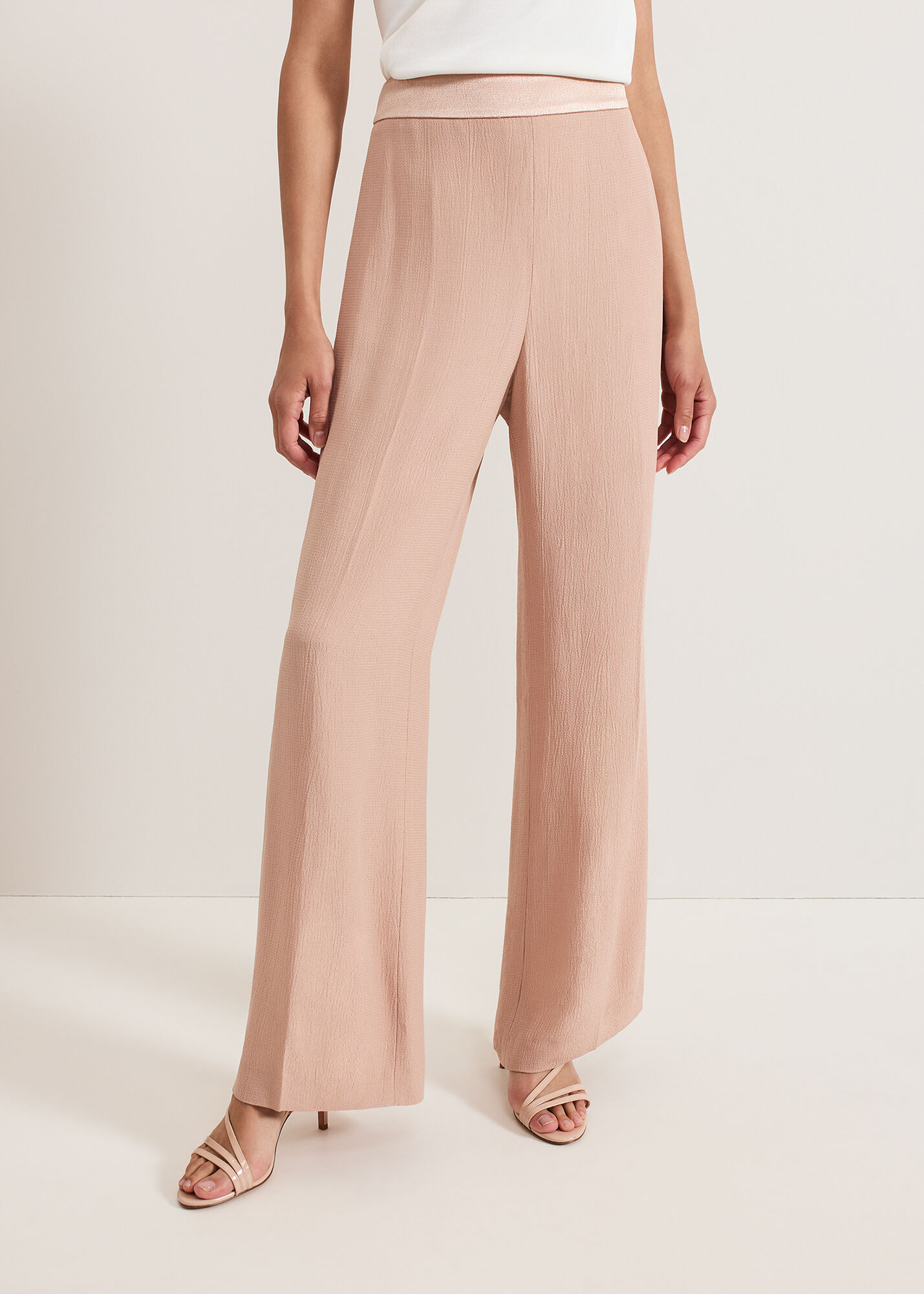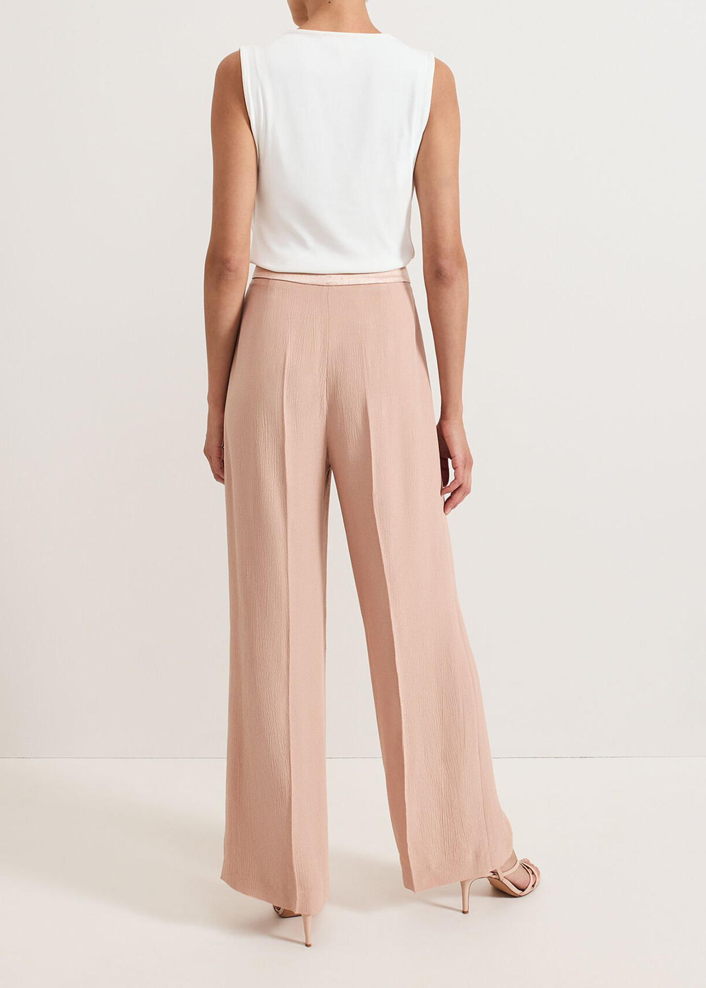 A fresh take on suit trousers. Our trousers are shaped to a straight leg fit and have a contrast satin waistband for an elevated touch. Subtle seam detailing adds a soft structure whilst the concealed side zip creates a flat fit. Style with your favourite tops and our matching jacket understated yet elegant event choice.