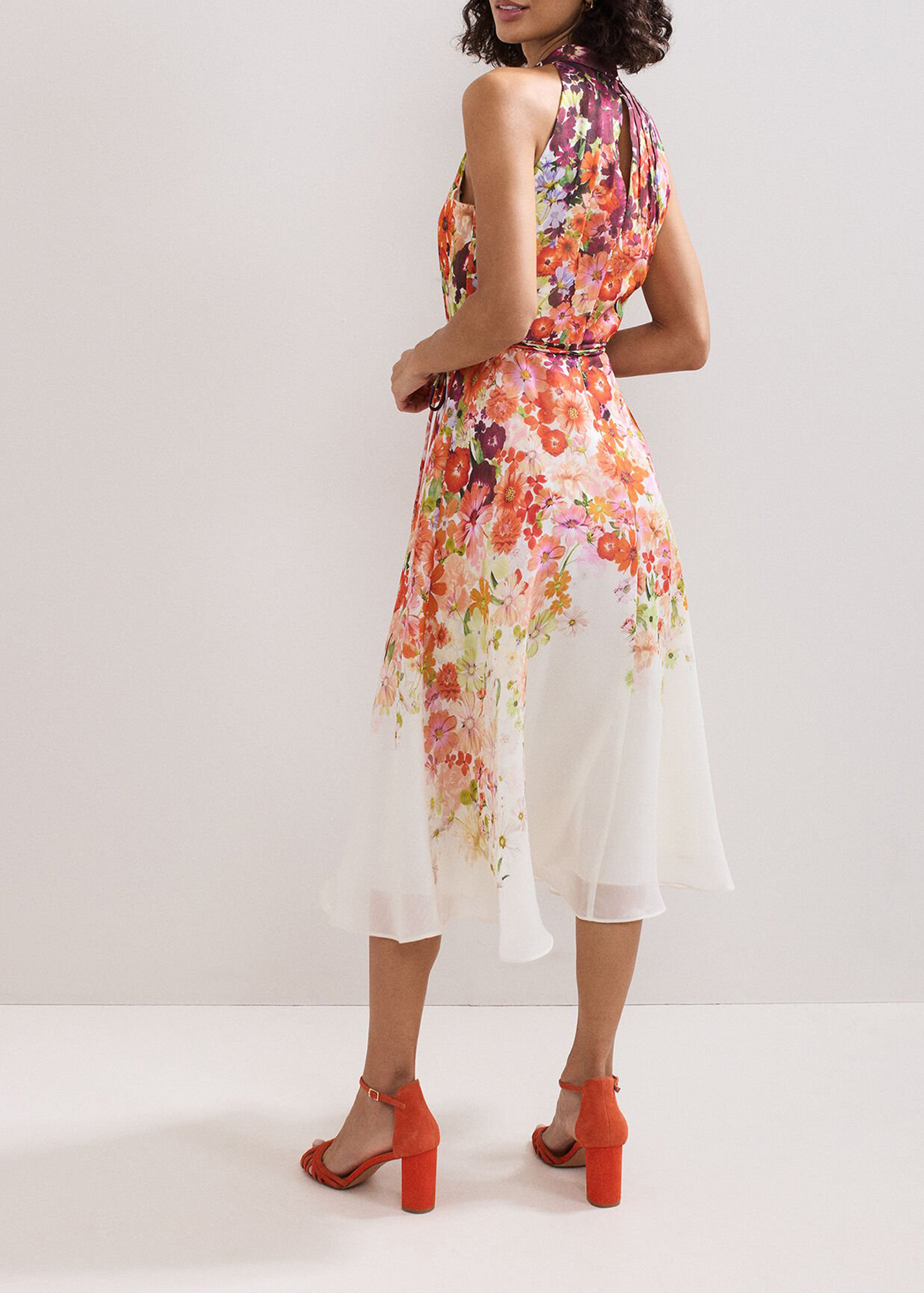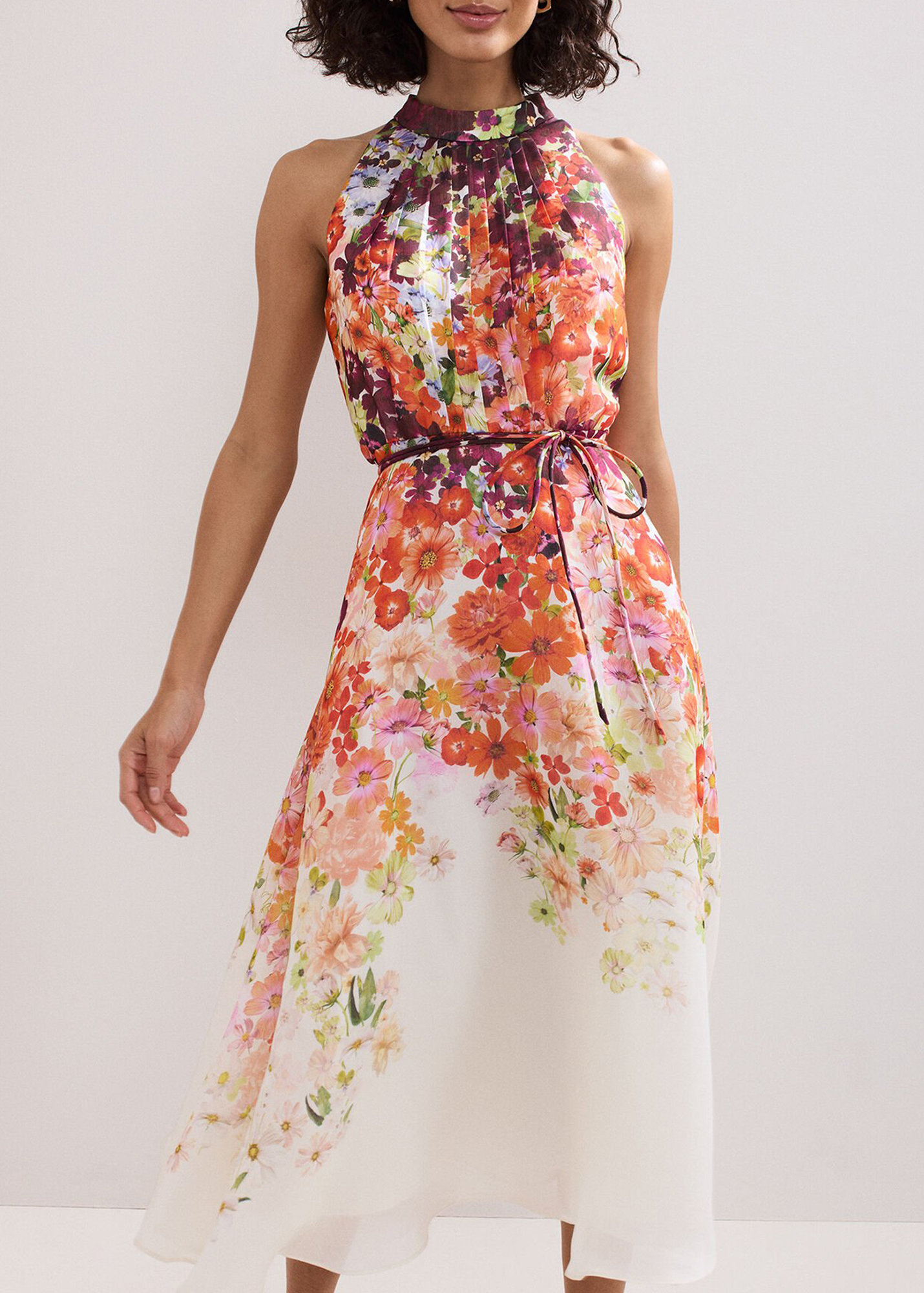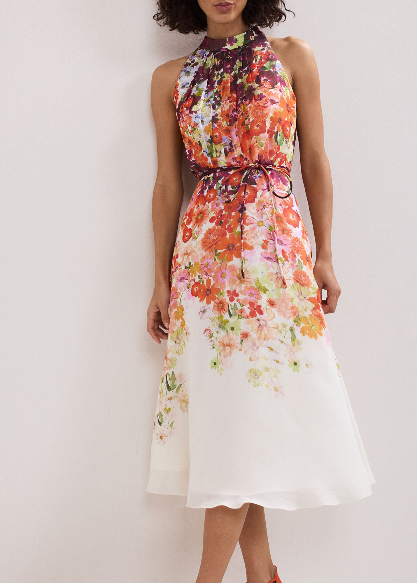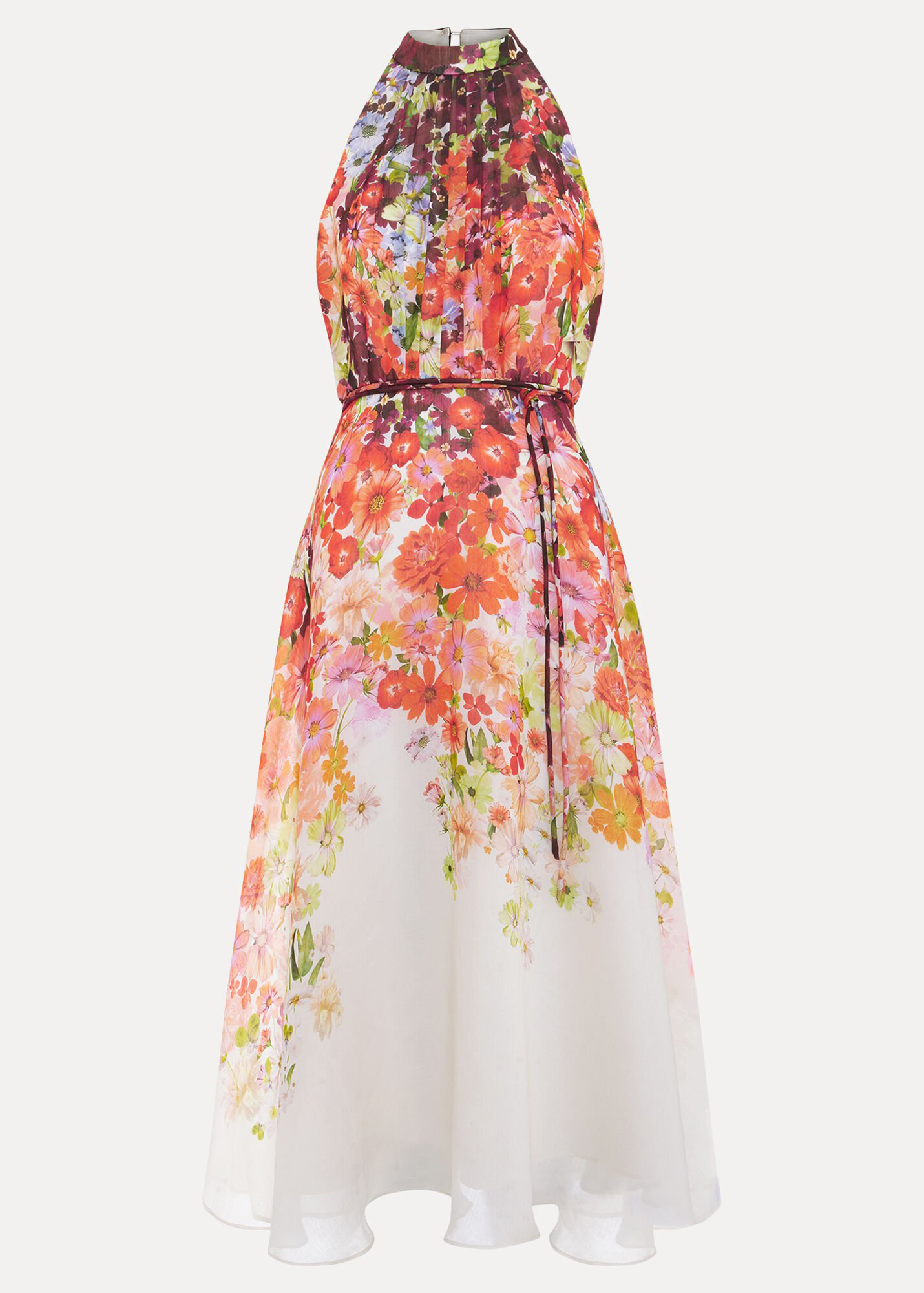 When a timeless silhouette meets a modern floral print, you get this striking halterneck dress. Featuring shades of vibrant citrus hues that highlight the natural movement of the skirt. Add elegance by styling with classic heels and a simple clutch.