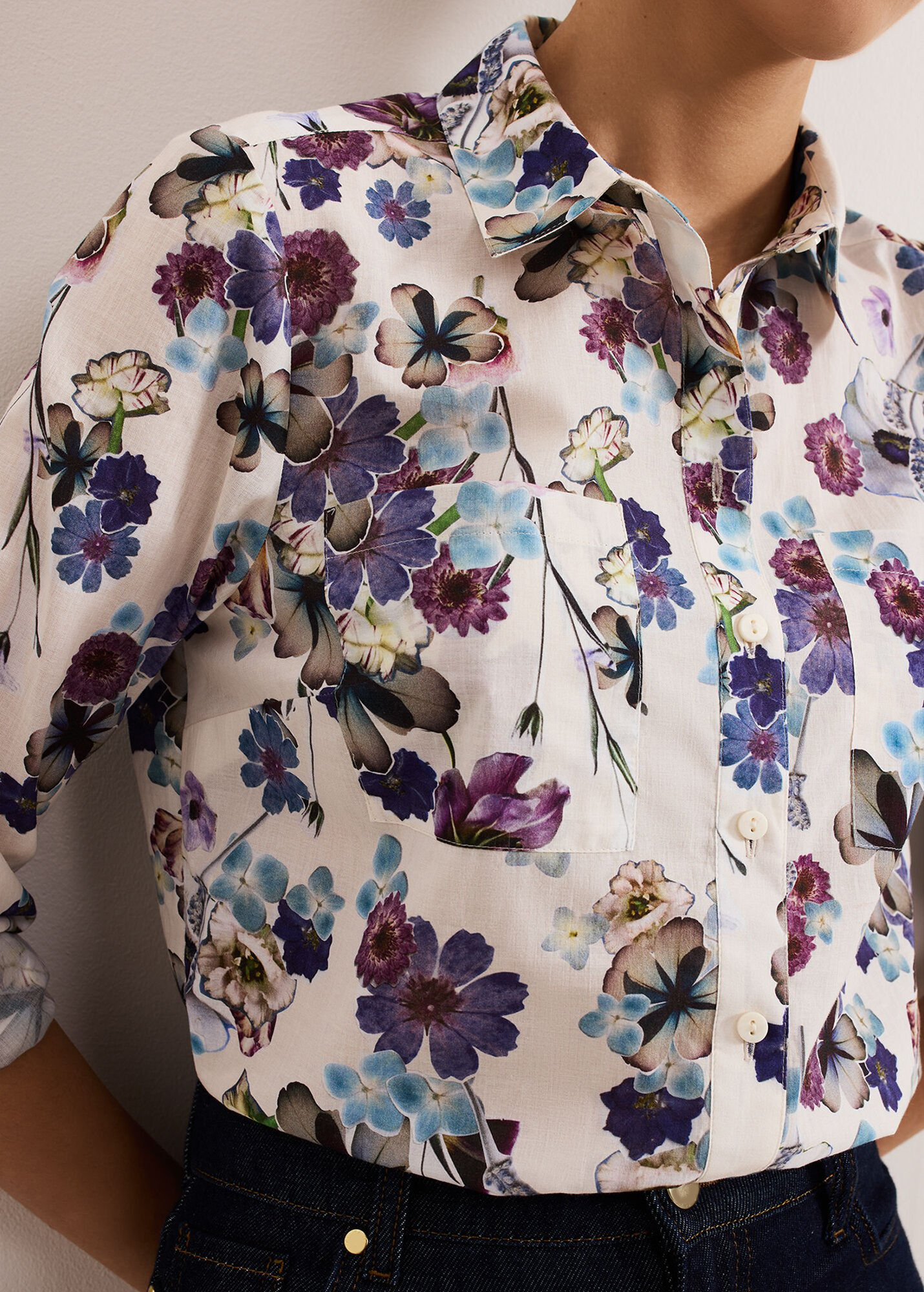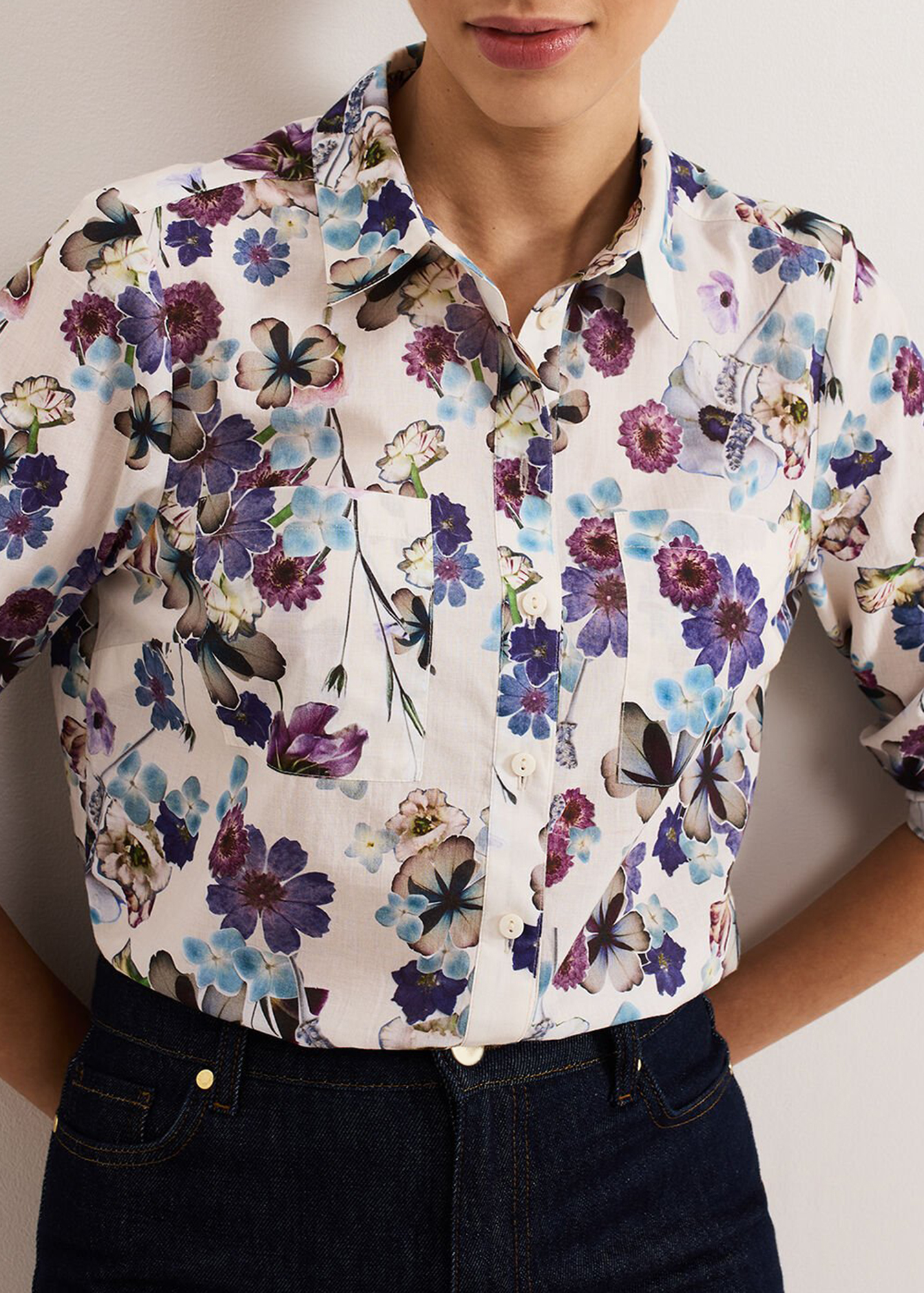 A work to weekend staple, our floral shirt is subtly tailored for a comfortable yet flattering fit. Finished with patch pockets for a contemporary update we love to style it with our favourite denim for a feminine everyday look.