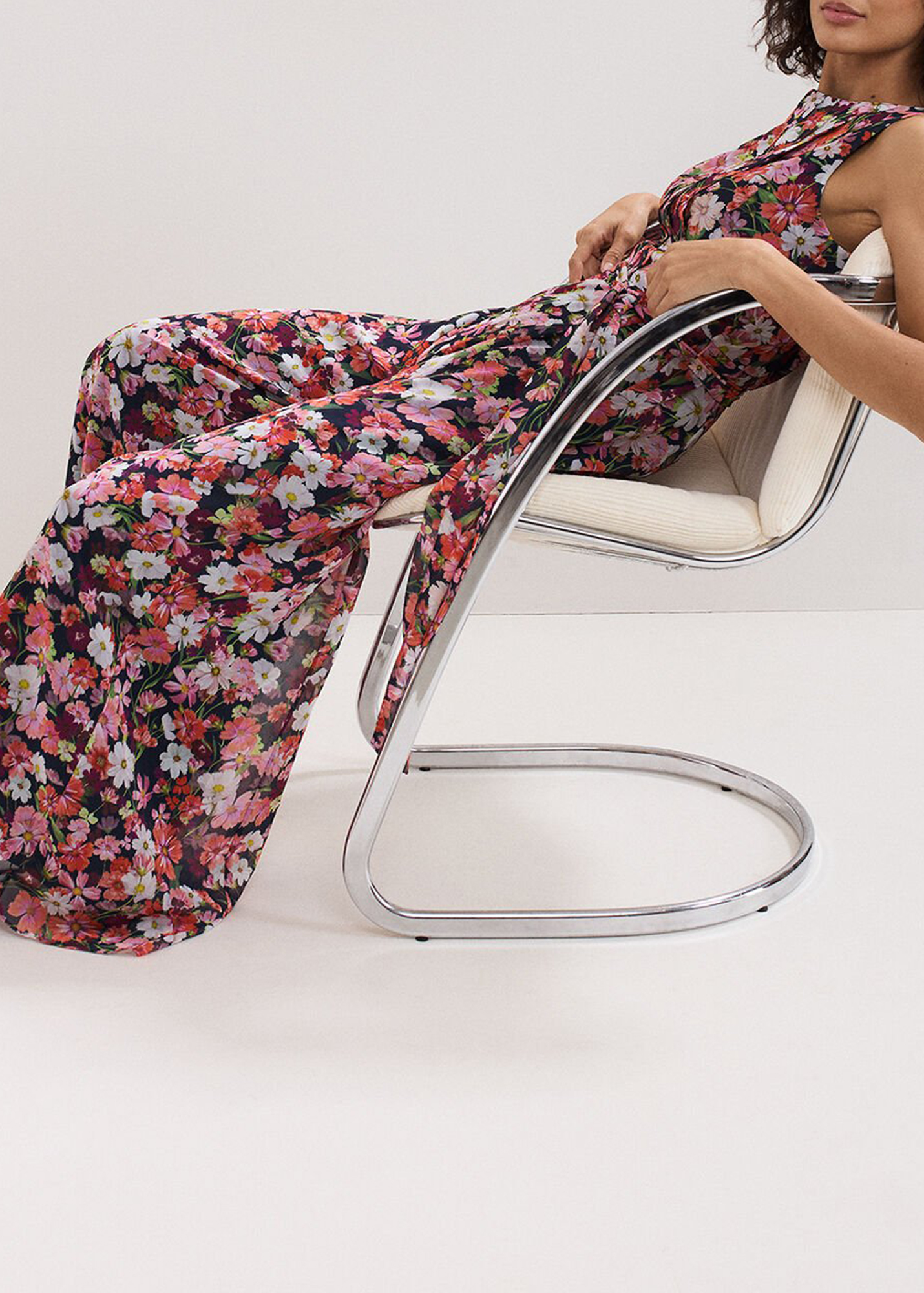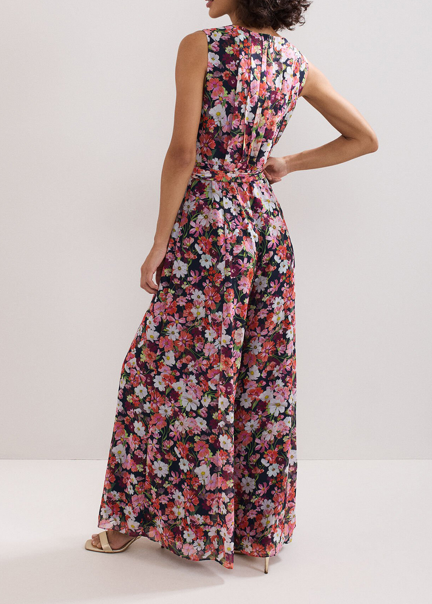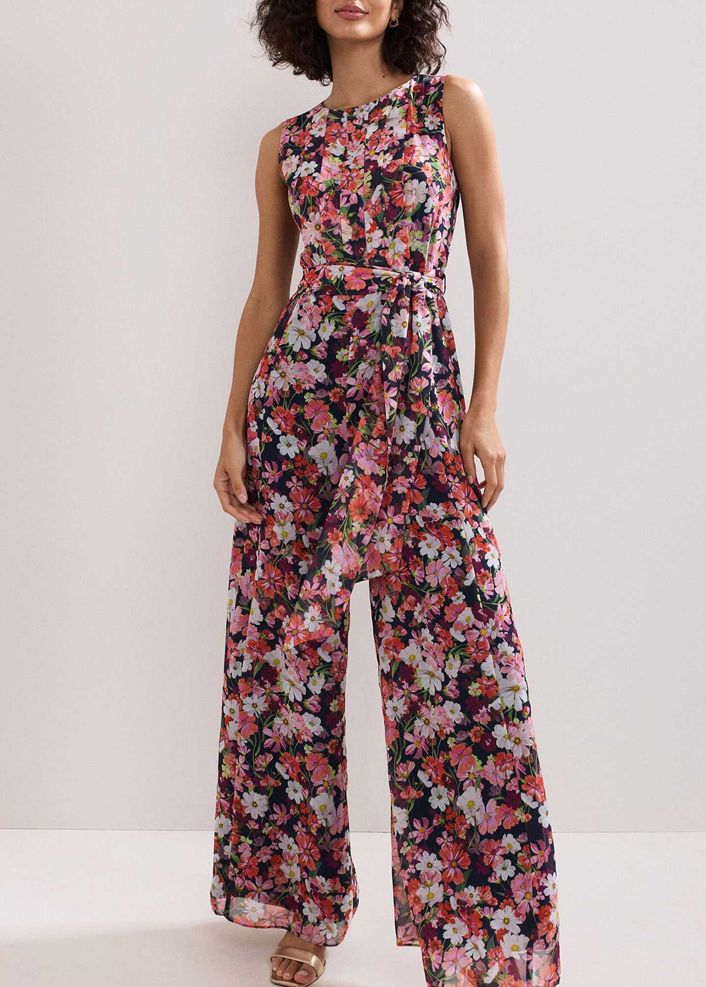 Make a statement in florals. This jumpsuit epitomises the beauty of nature and blooming British meadows, with high impact repeat florals and a contemporary wide leg silhouette. Finishing the look with a stylish tie waist to cinch and sculpt, adding shape and balance.