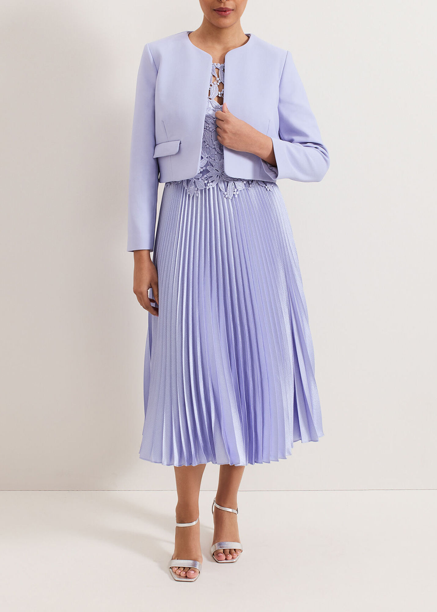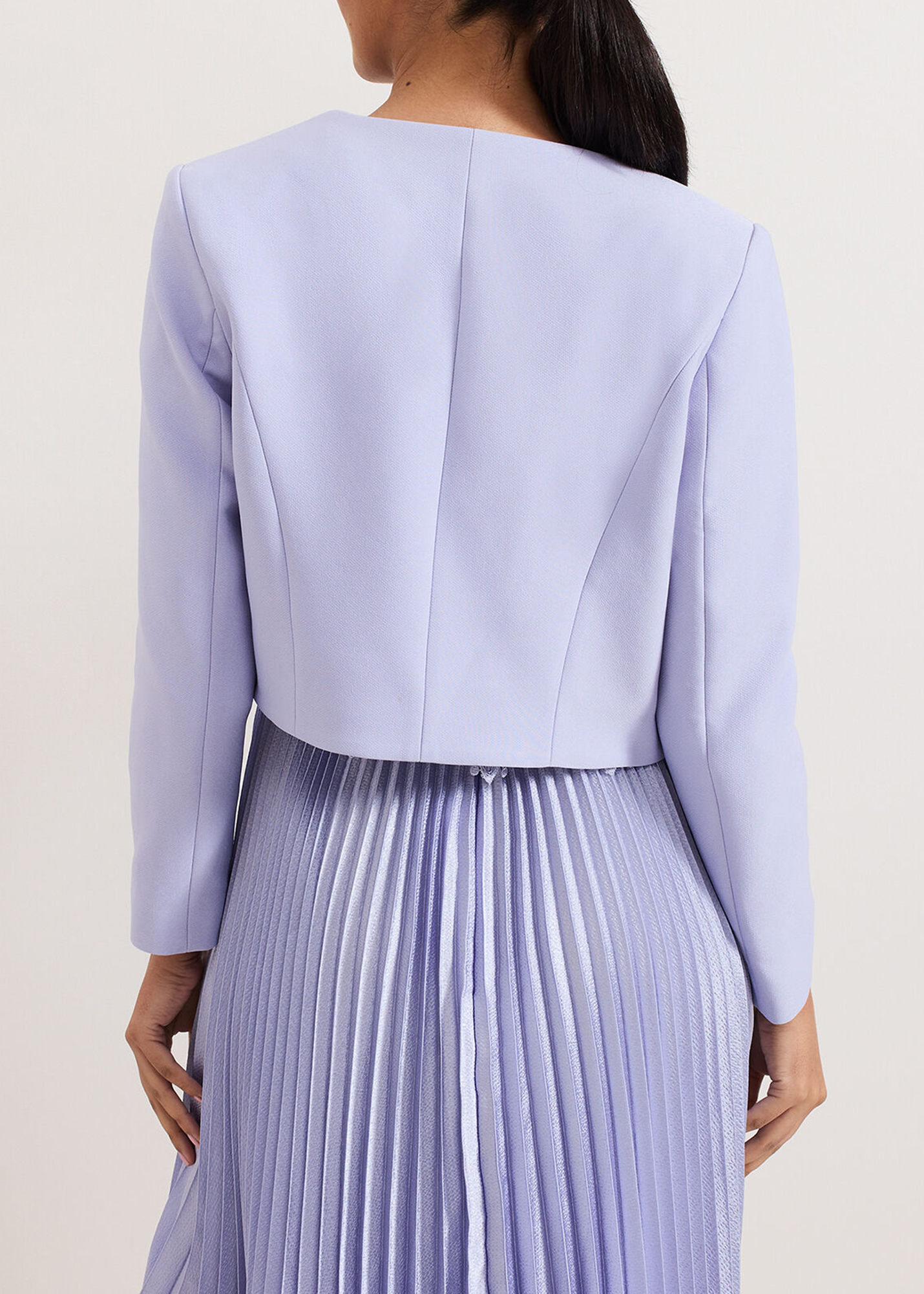 Our jacket is an elegant event staple. With exposed seam detailing at the back for a flattering fit our cropped jacket is finished with faux flap pockets. Style over all your favourite occasion outfits and matching accessories for a sophisticated look.