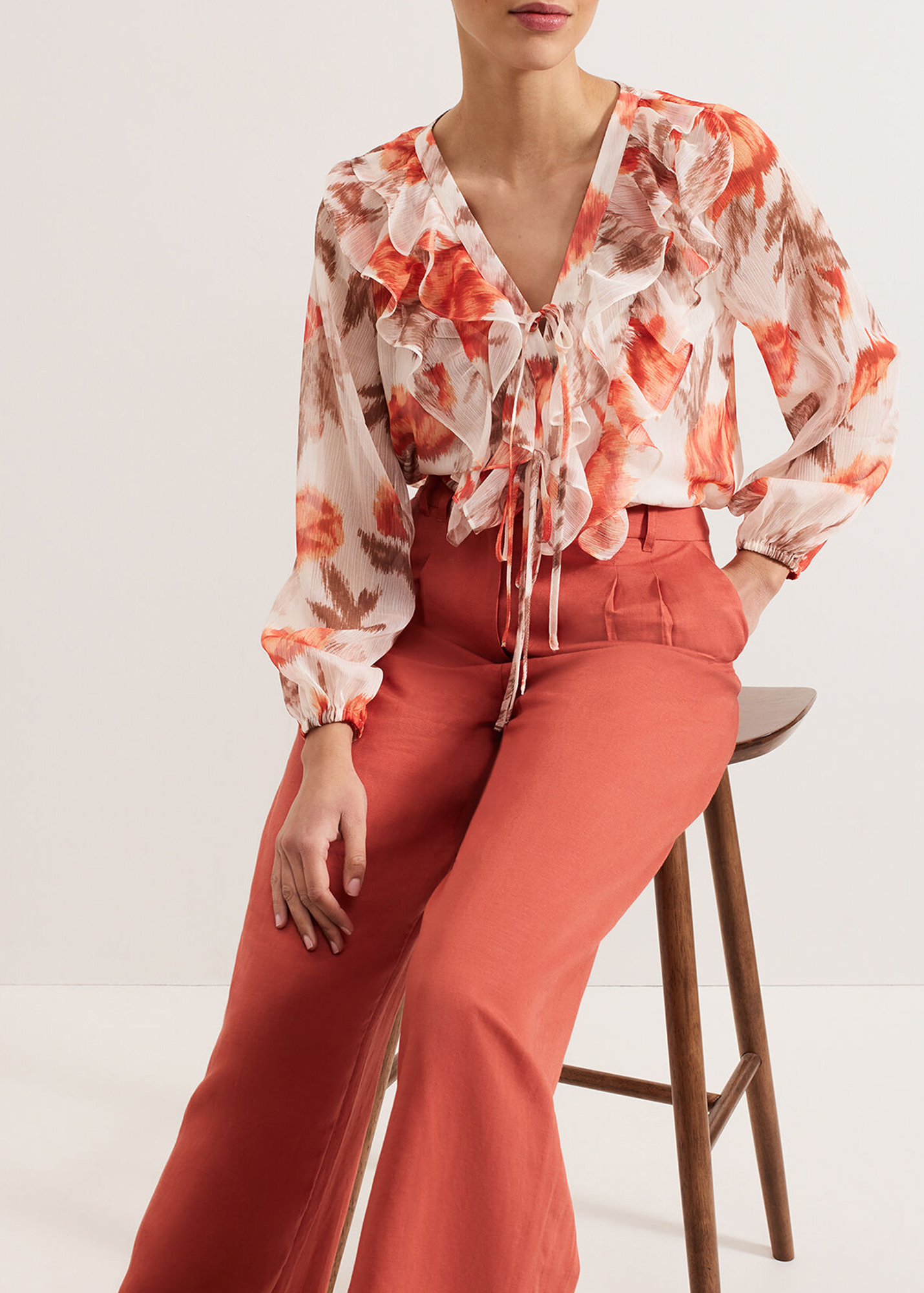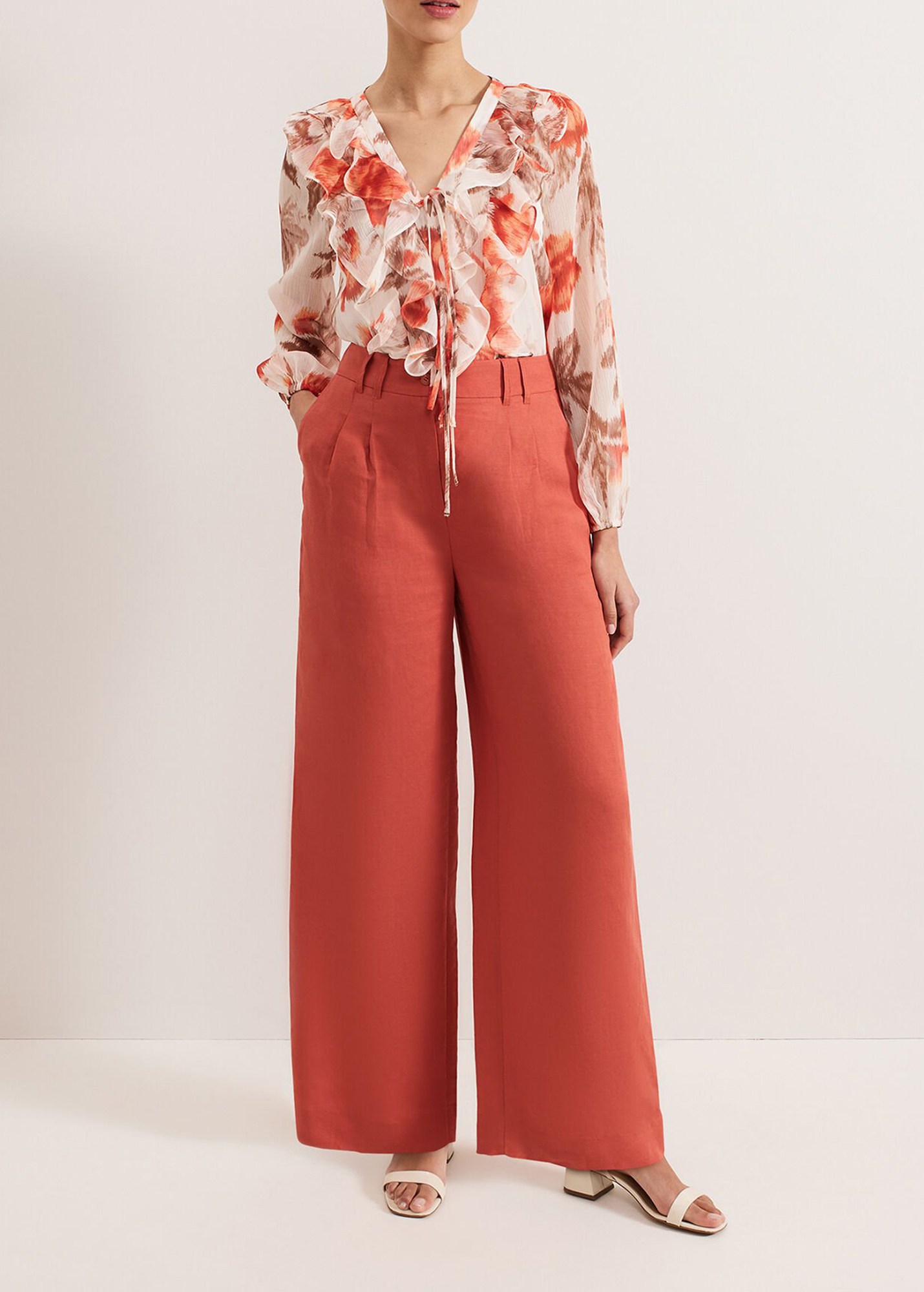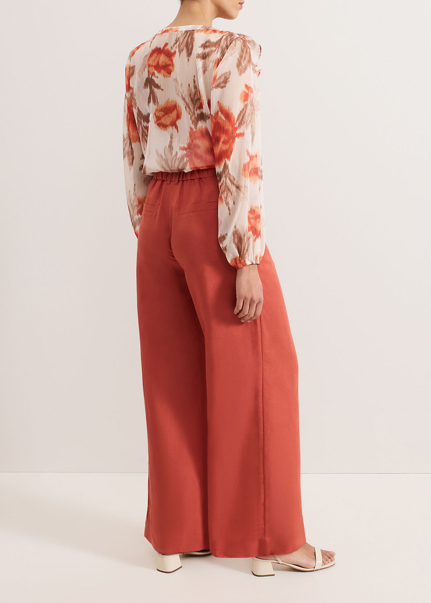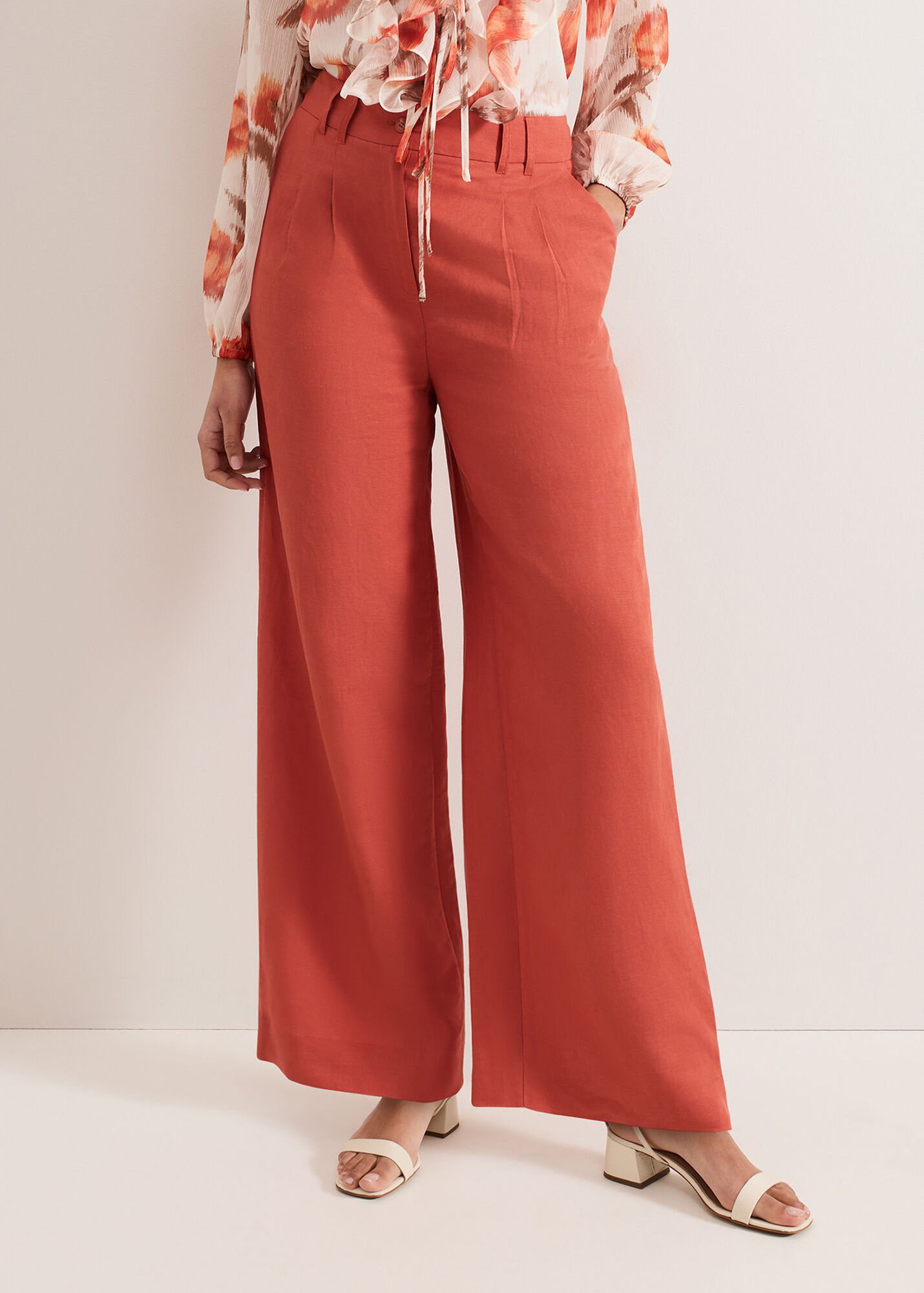 Our new lightweight linen blend has been crafted to minimise creasing, perfect for wearing all day or night. The burnt orange shade brings a subtle pop of colour, falling to a comfortable yet stylish wide leg. Style with our matching top or your favourite blouse for an effortless look.