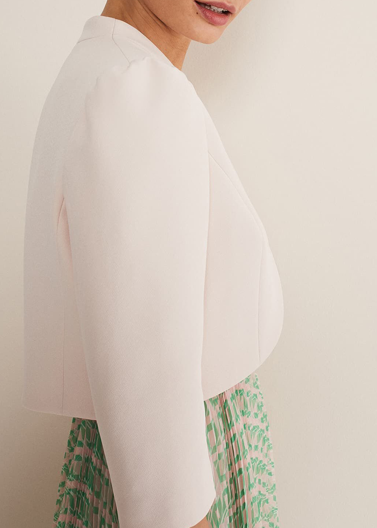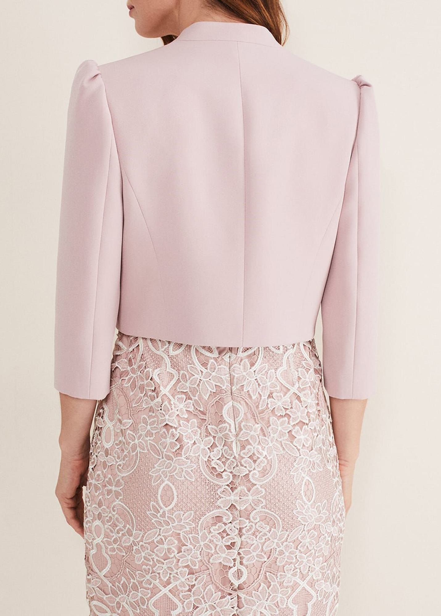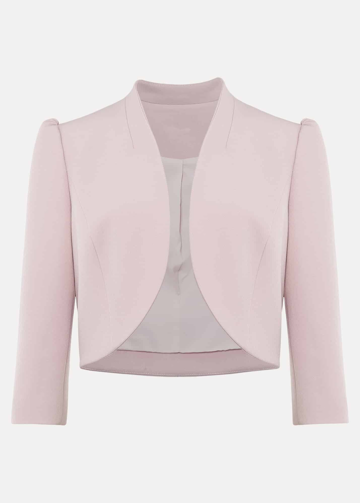 The perfect extra layer to your special occasion outfits. Designed in a soft pink shade, our fitted jacket is designed with clean seam detailing and a curved open front for an elegant silhouette.