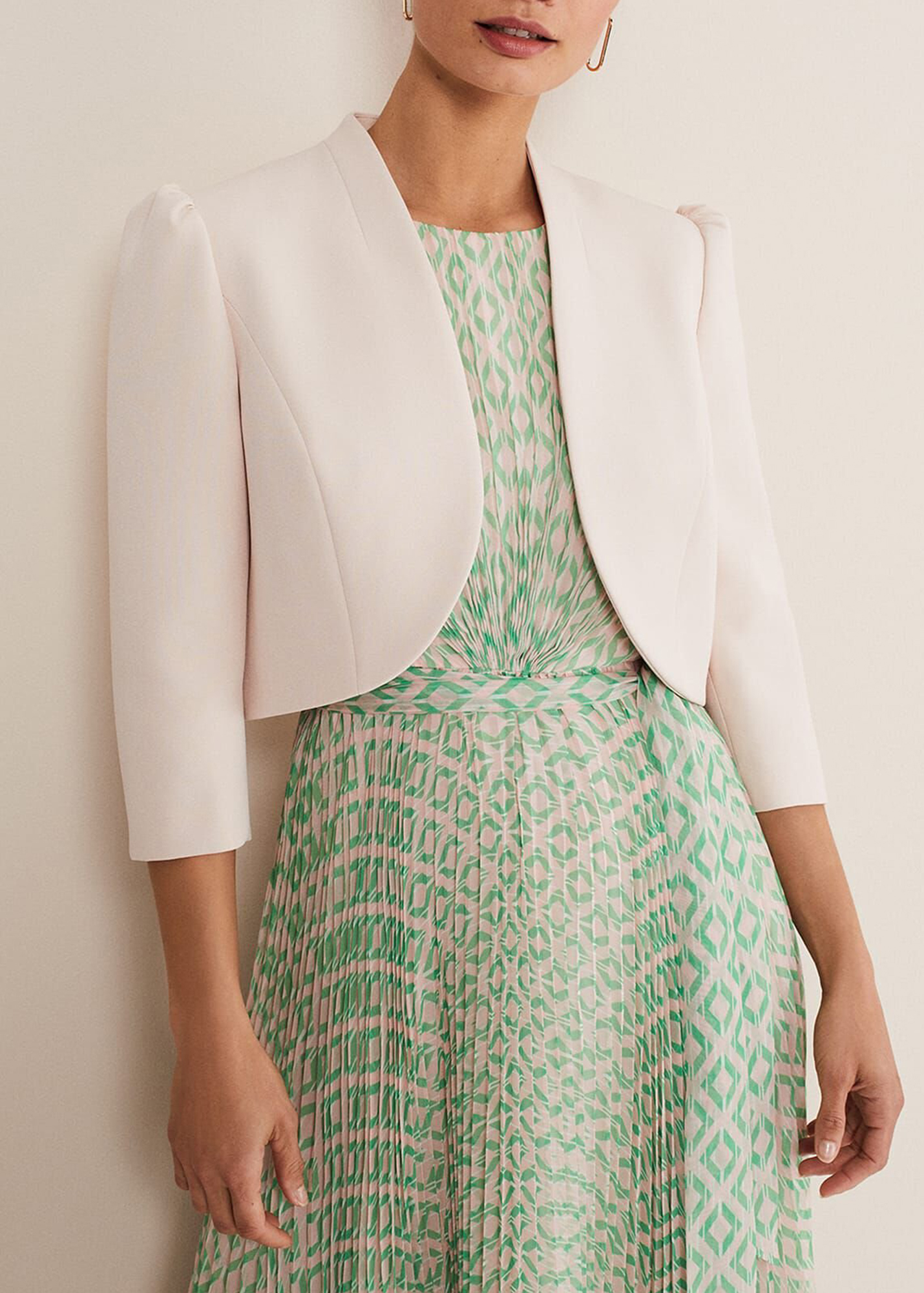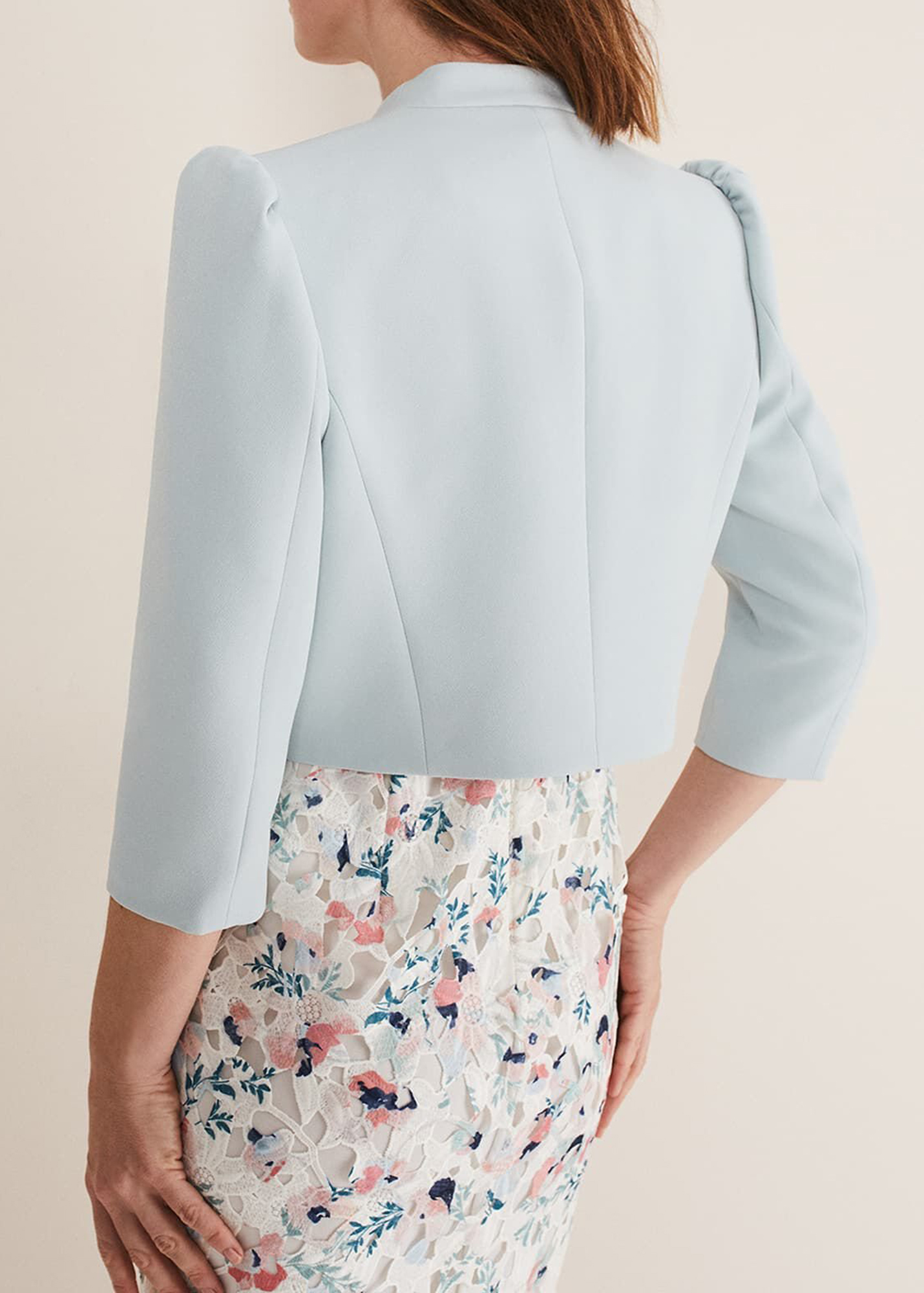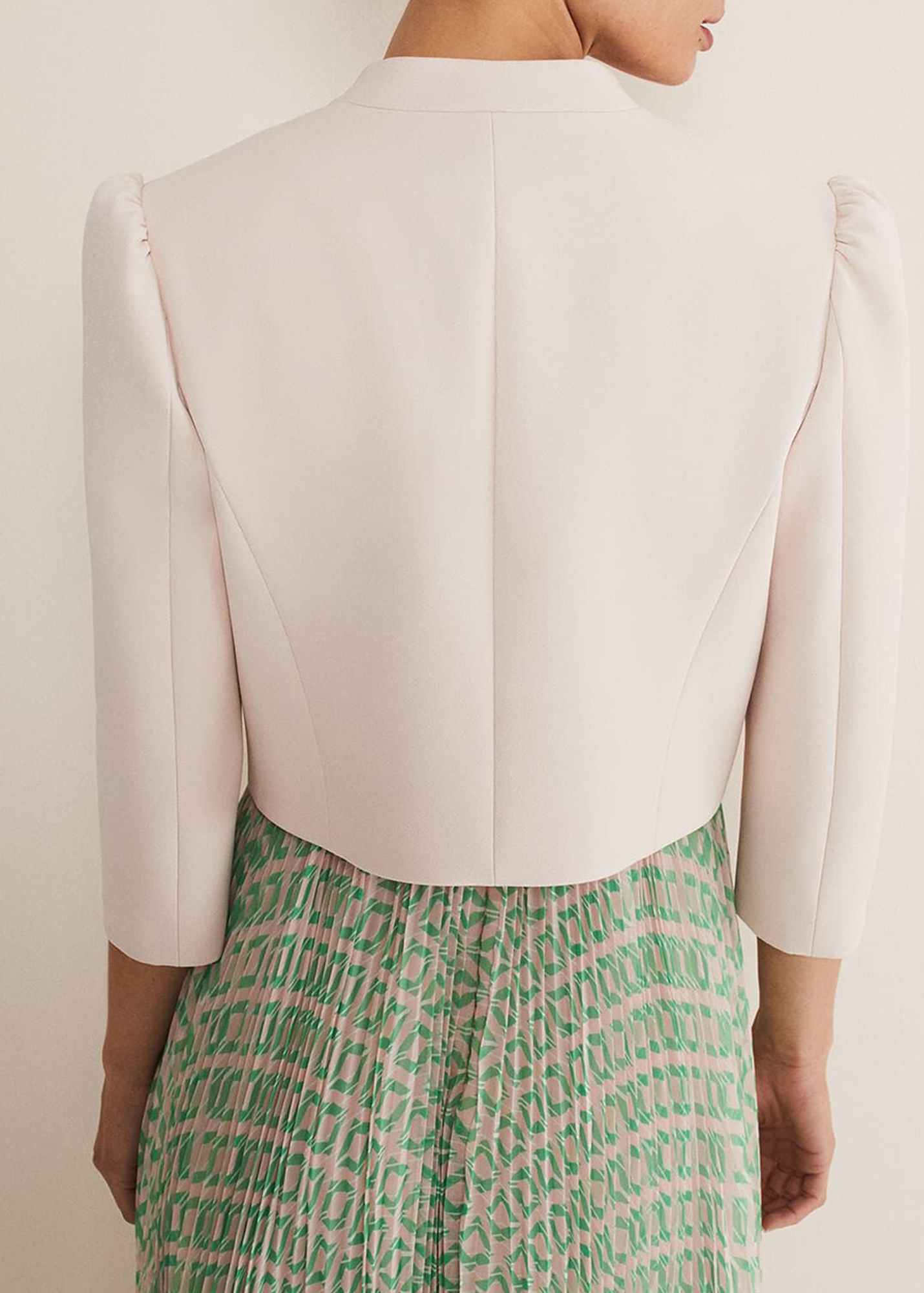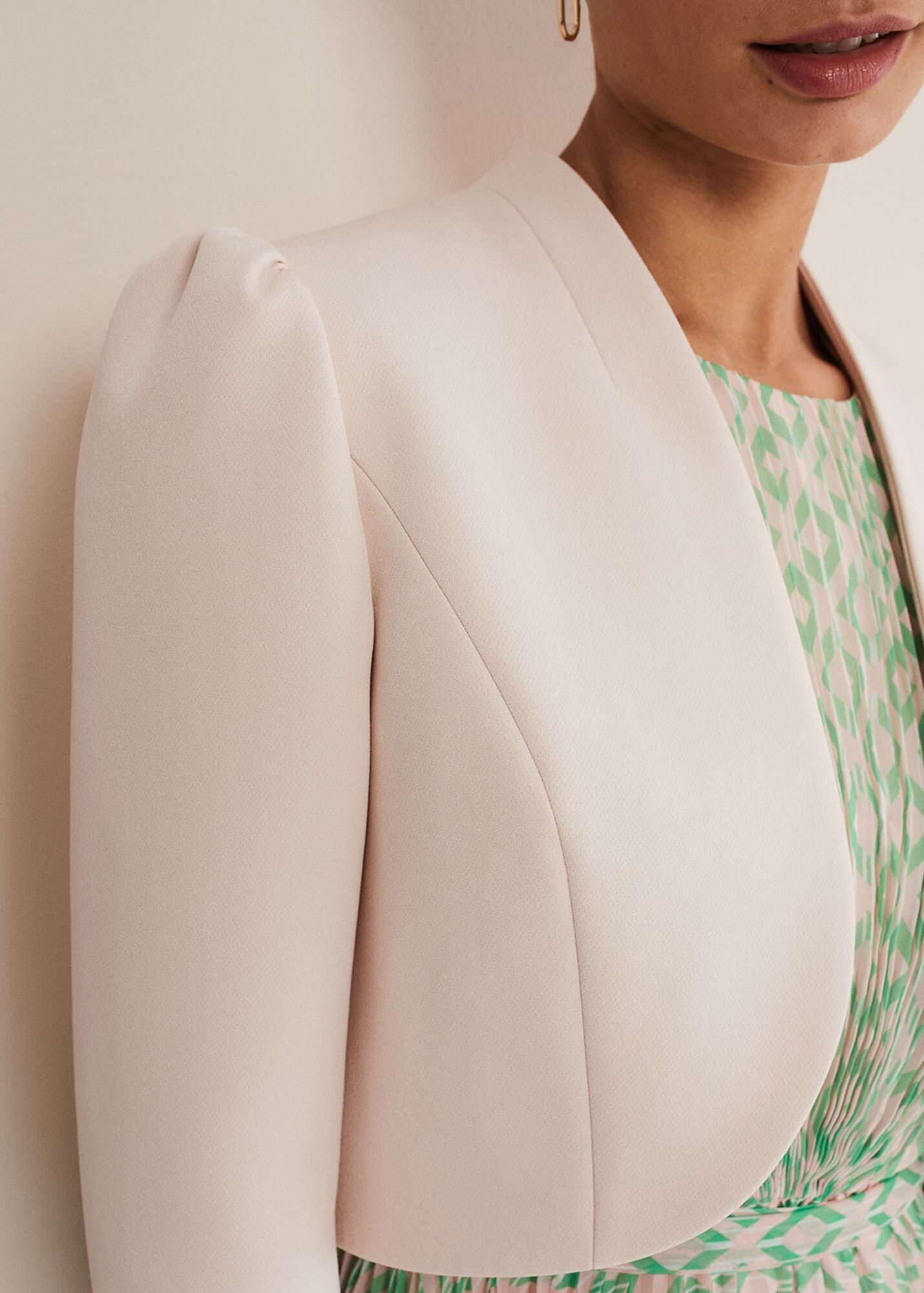 The perfect extra layer to your special occasion outfits. Designed in a soft pink shade, our fitted jacket is designed with clean seam detailing and a curved open front for an elegant silhouette.