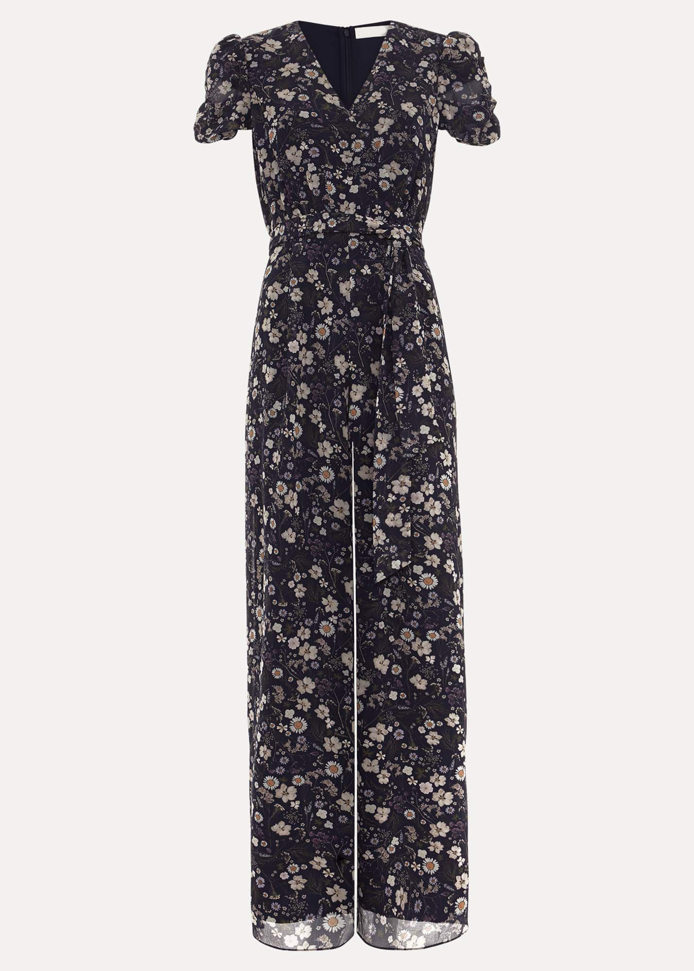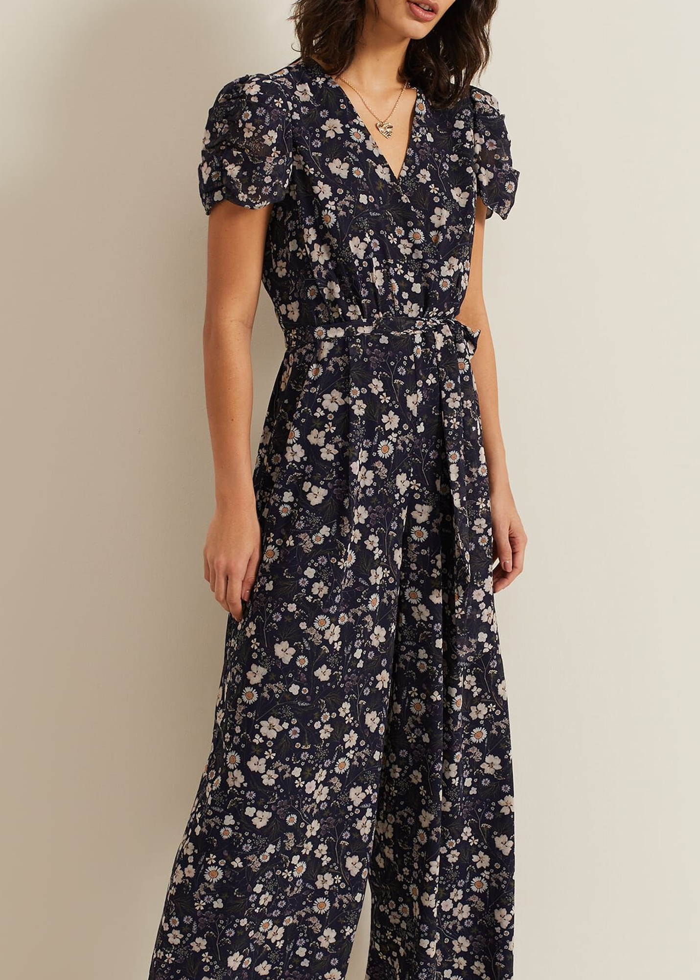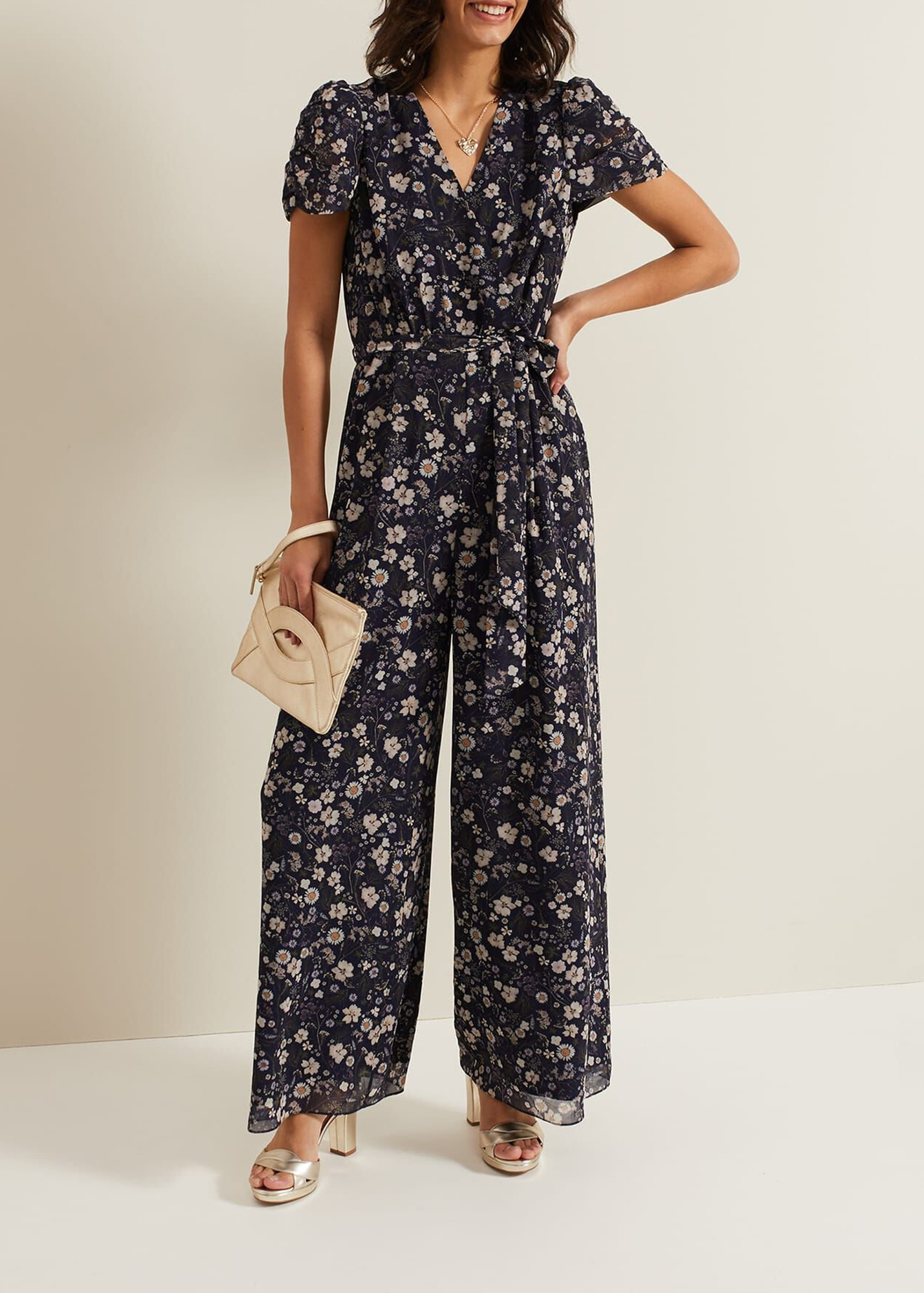 A floral jumpsuit is the statement piece your wardrobe needs. Designed on a dark base with dainty white florals, our jumpsuit features a feminine wrap-style bodice, ruched short sleeves and falls to a wide leg silhouette.