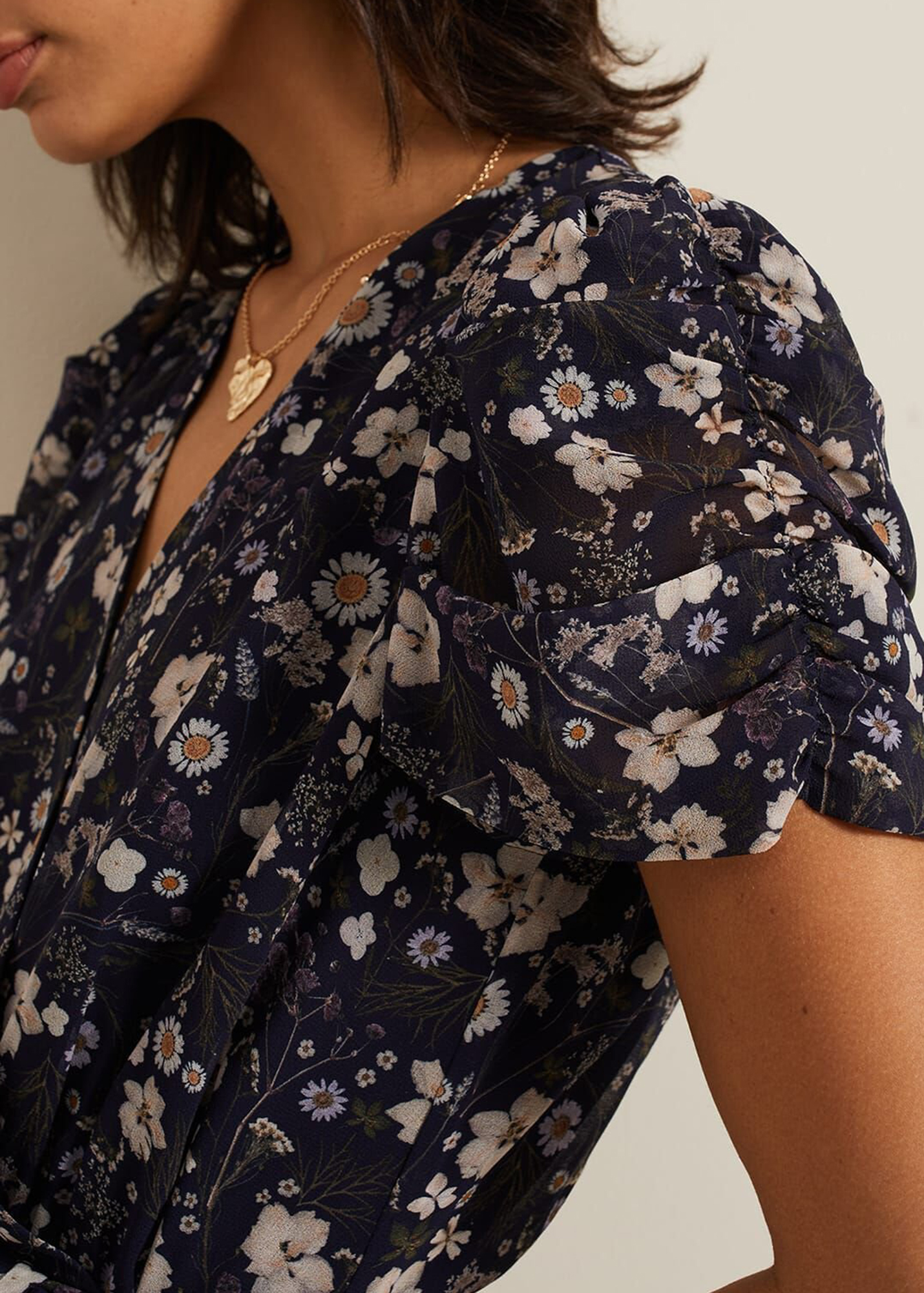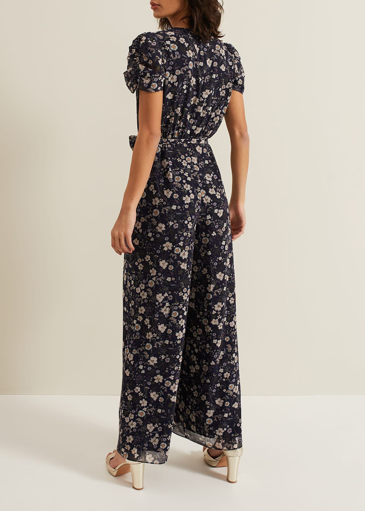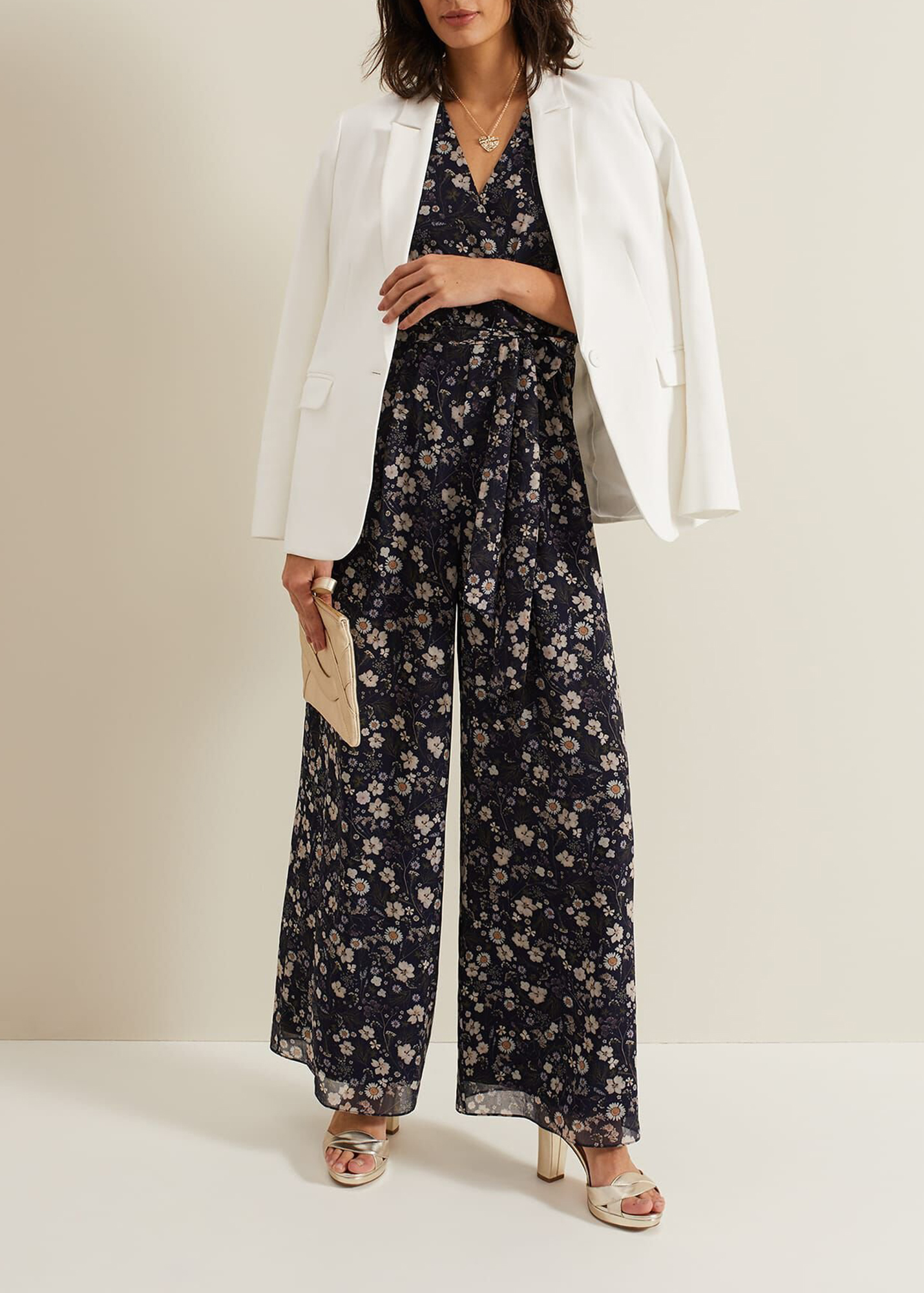 A floral jumpsuit is the statement piece your wardrobe needs. Designed on a dark base with dainty white florals, our jumpsuit features a feminine wrap-style bodice, ruched short sleeves and falls to a wide leg silhouette.