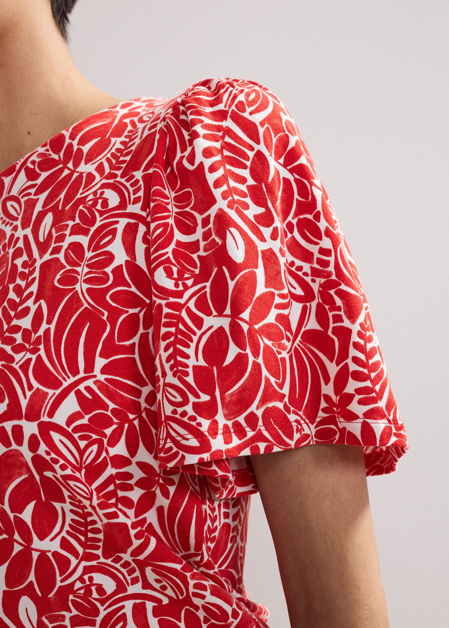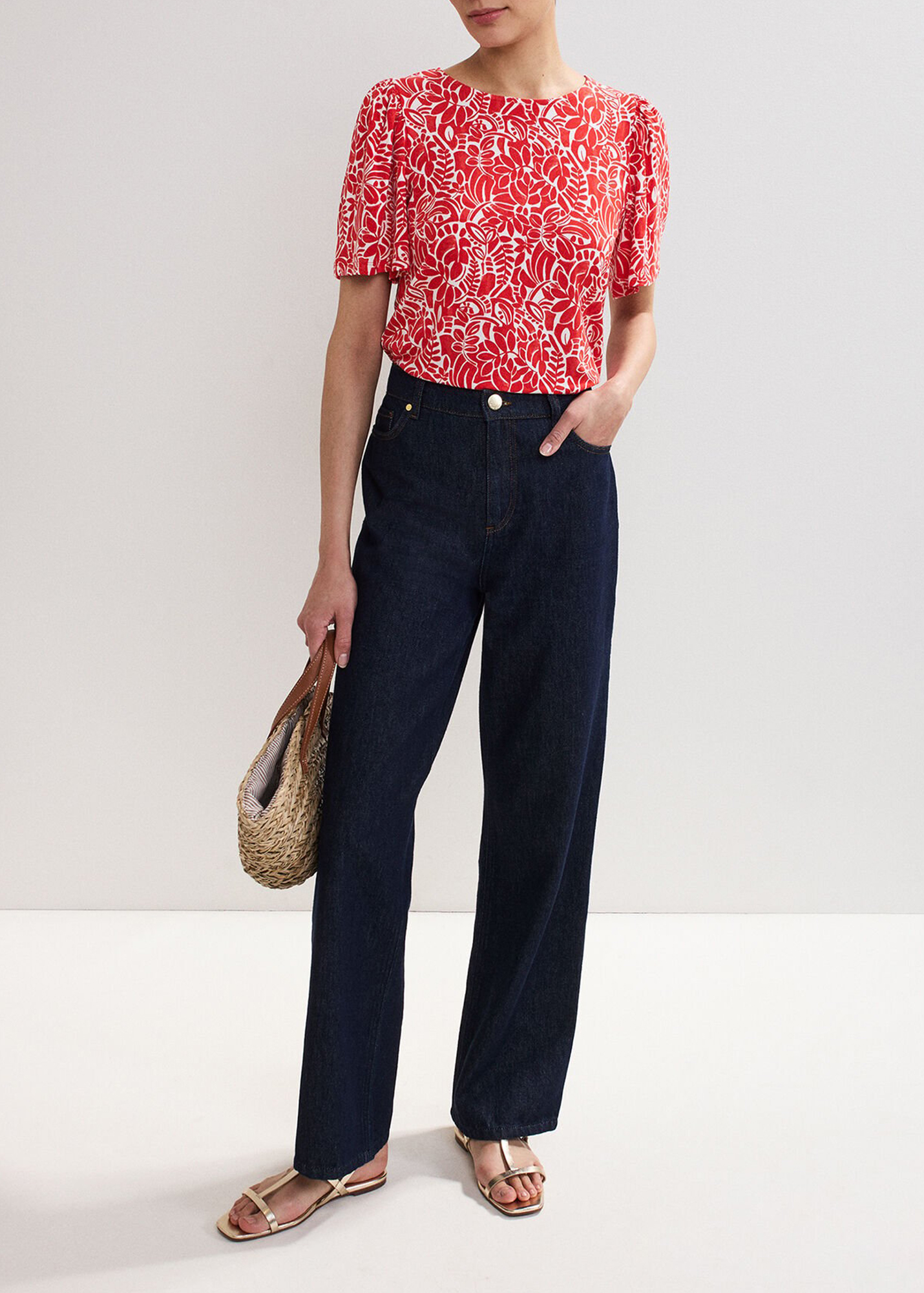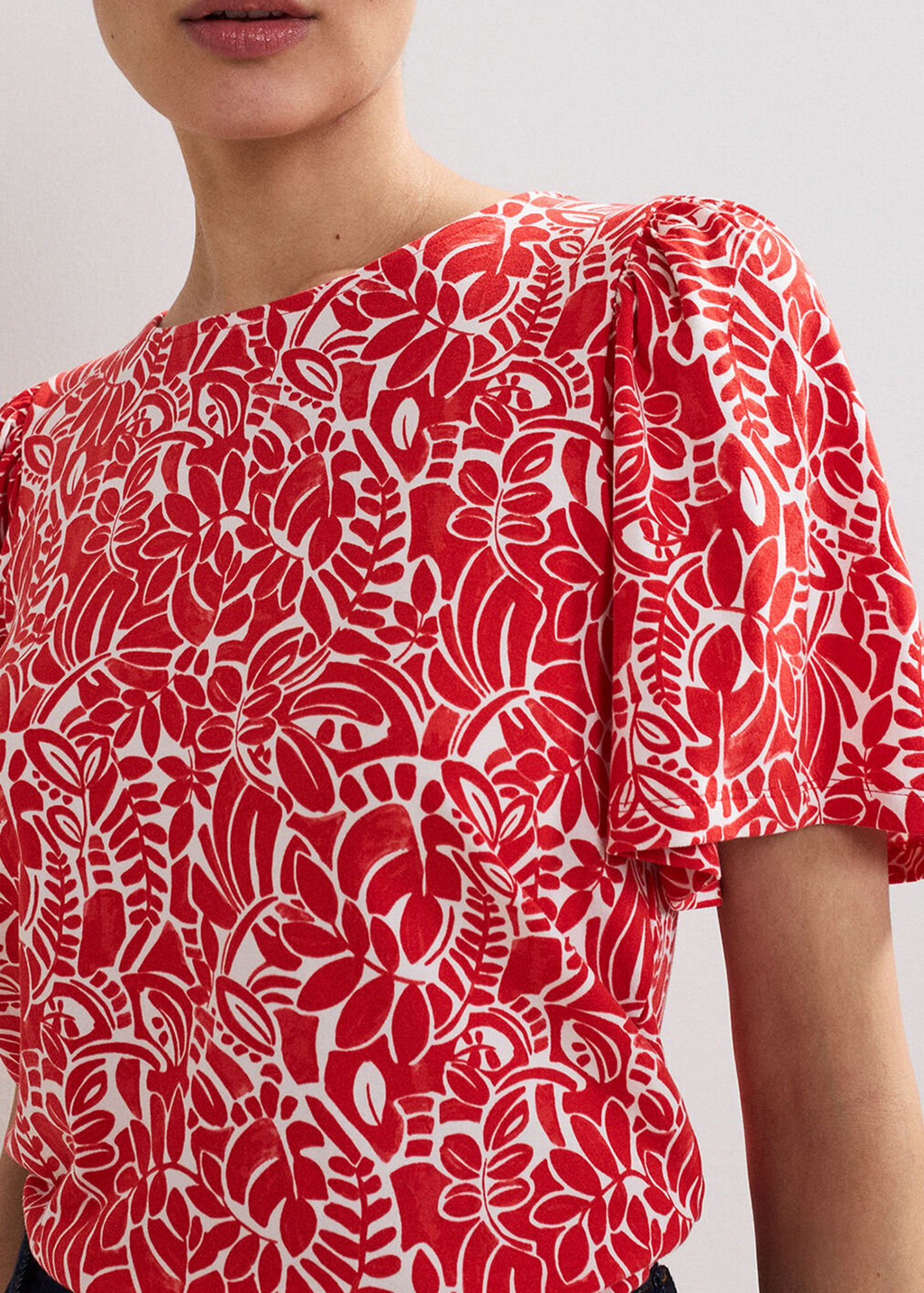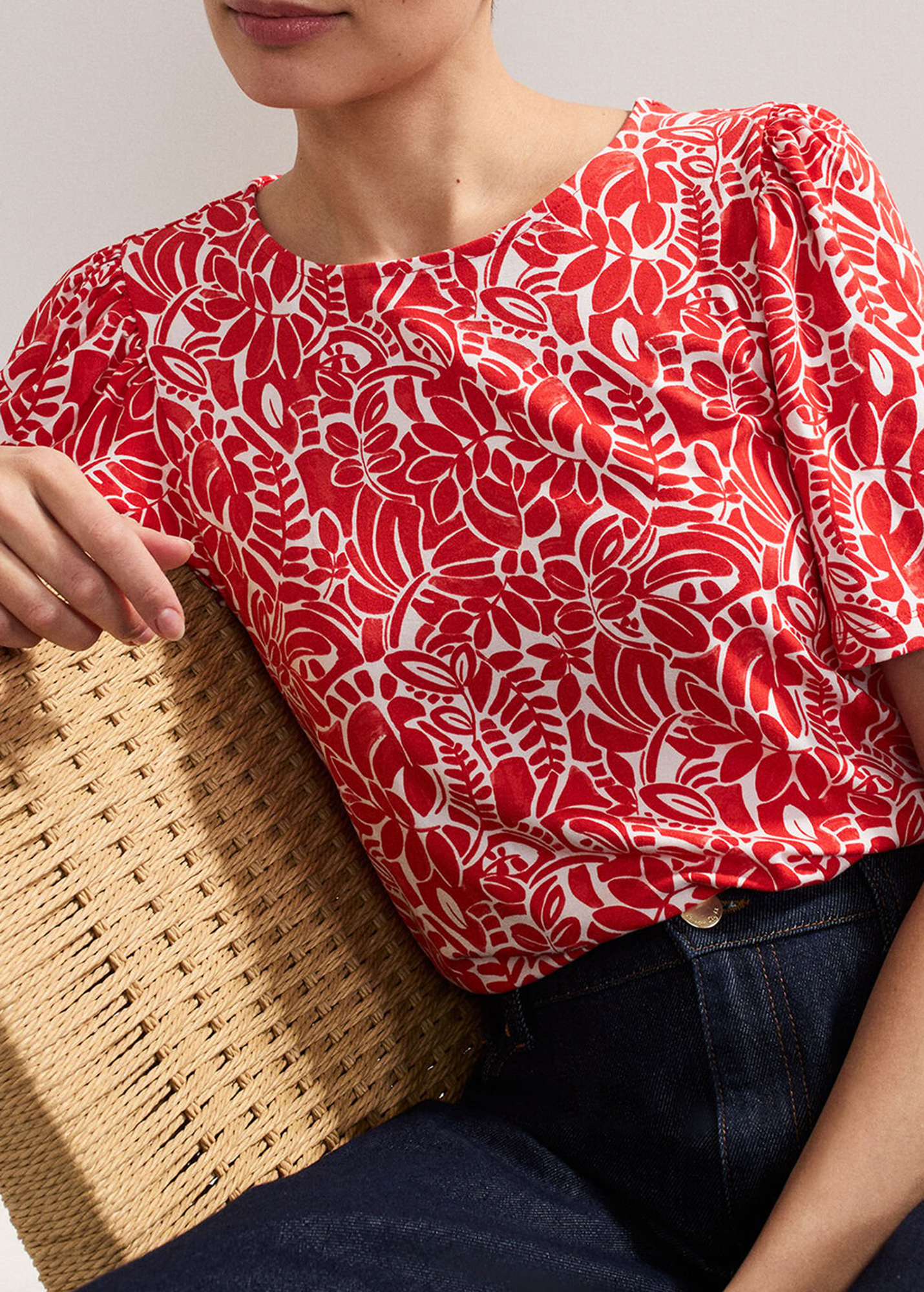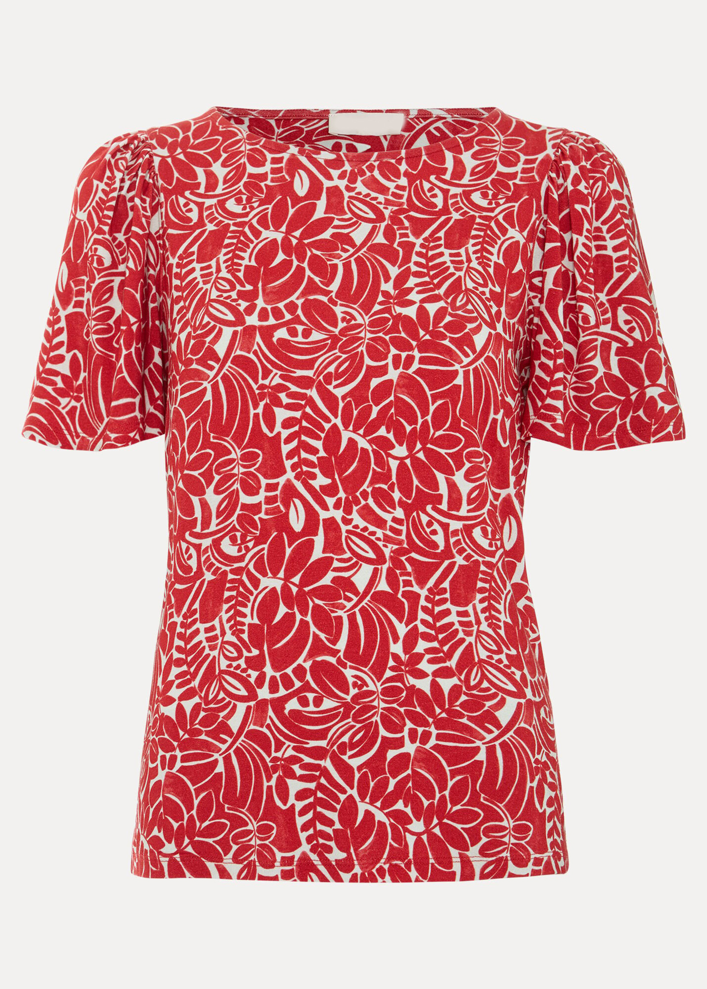 Add this elevated T-shirt to your collection. Updated with a vibrant red print for a pop of colour, bell sleeves add a contemporary edge to this top. Paired with your favourite separates it’s the perfect everyday style.