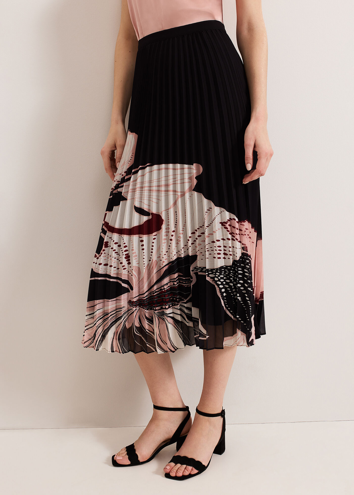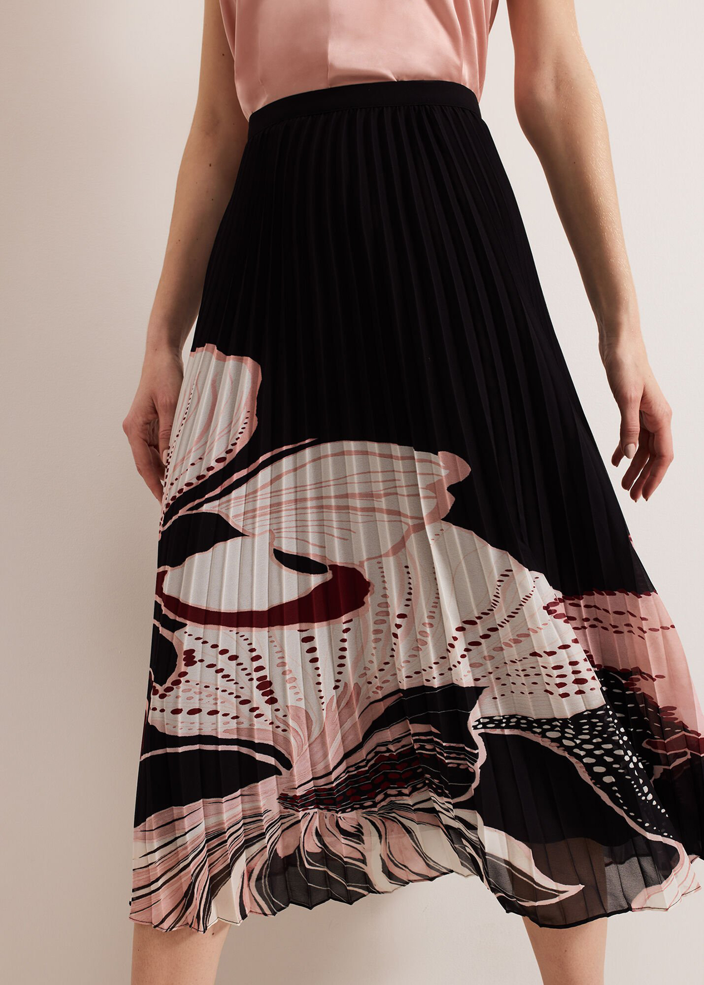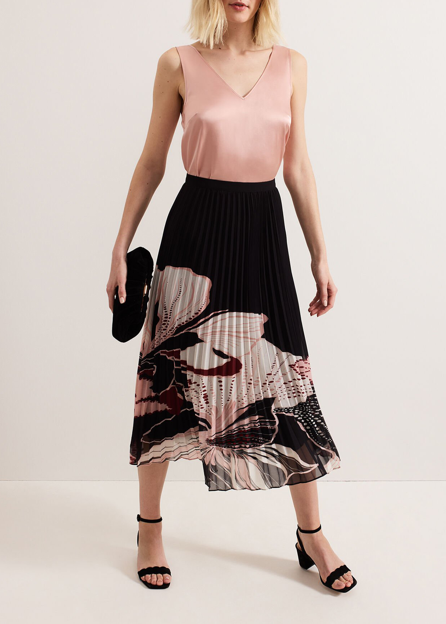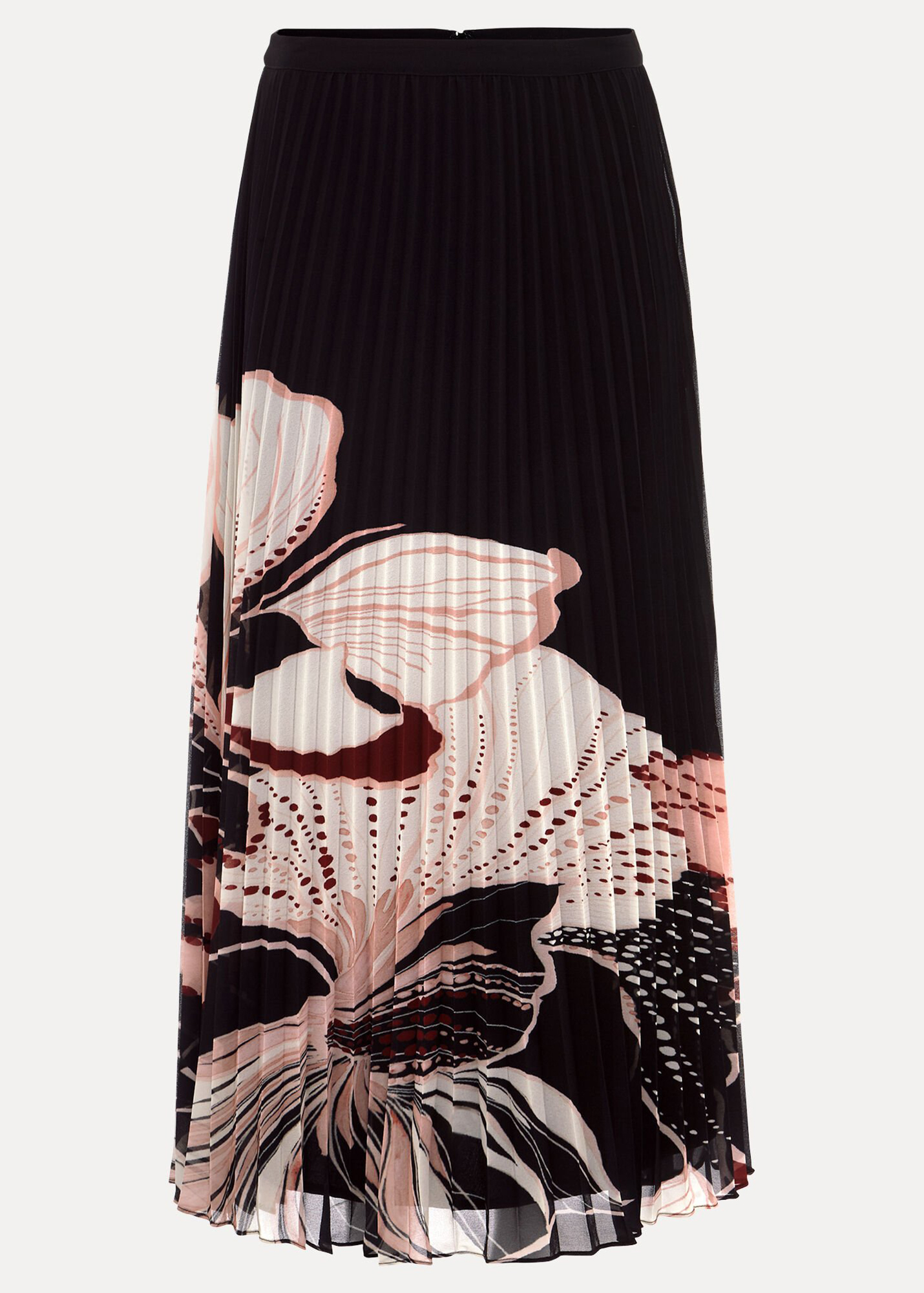 Designed in a new statement floral print, our Elmina skirt will become your new favourite style. Sitting high on the waist it falls to a flowing midi length whilst pleating throughout creates beautiful movement. For a standout style to take you from desk to dinner, pair with your favourite heels.