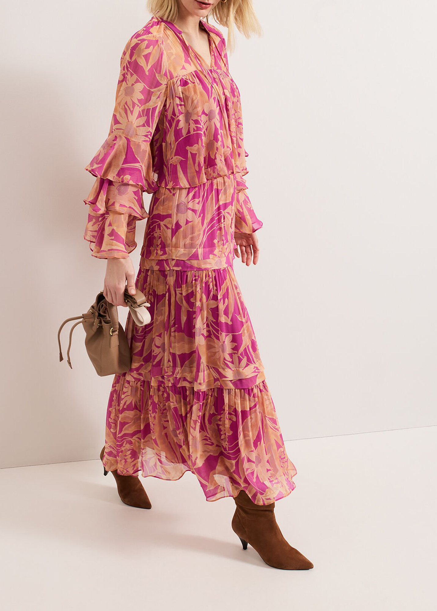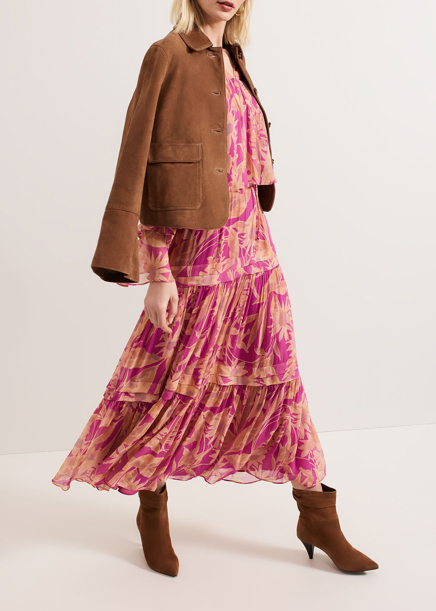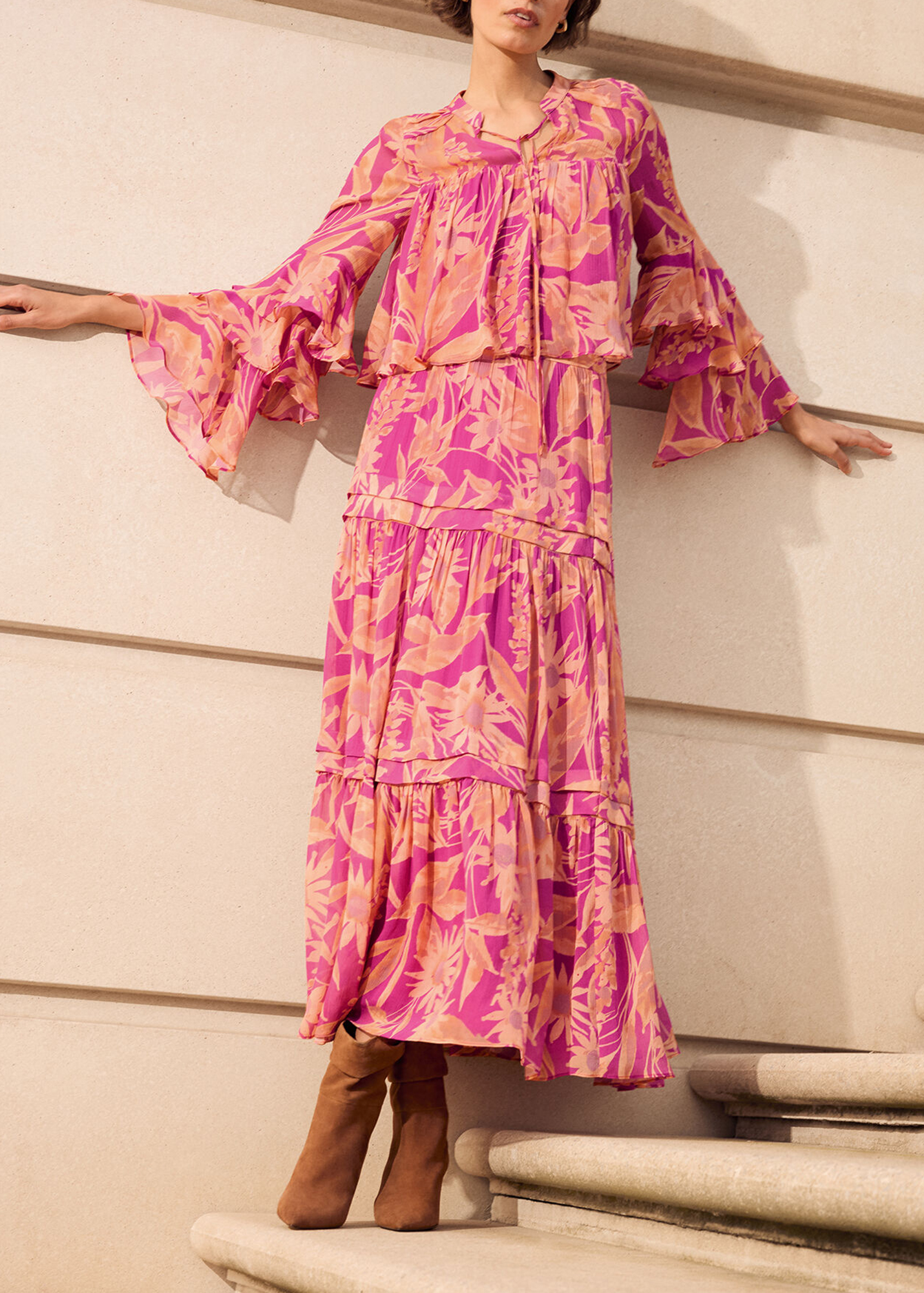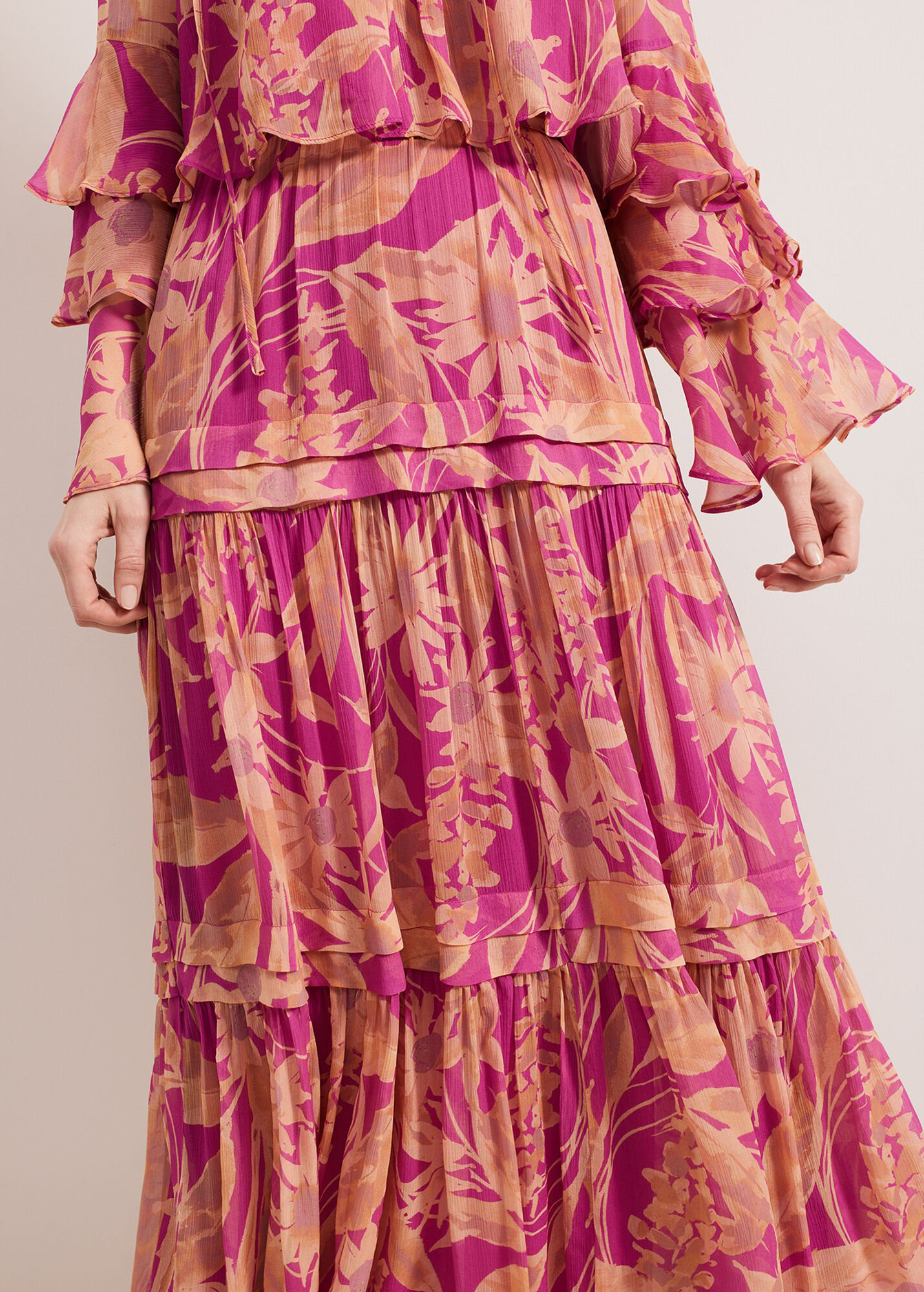 Grounded in pink and orange that will take you through the seasons, our skirt is designed with a new hand-painted sunflower inspired print. Subtly pleated for flowing movement the maxi style is exaggerated by tiered detailing. Style with our matching top for a coordinated feminine style that is sure to turn heads.
