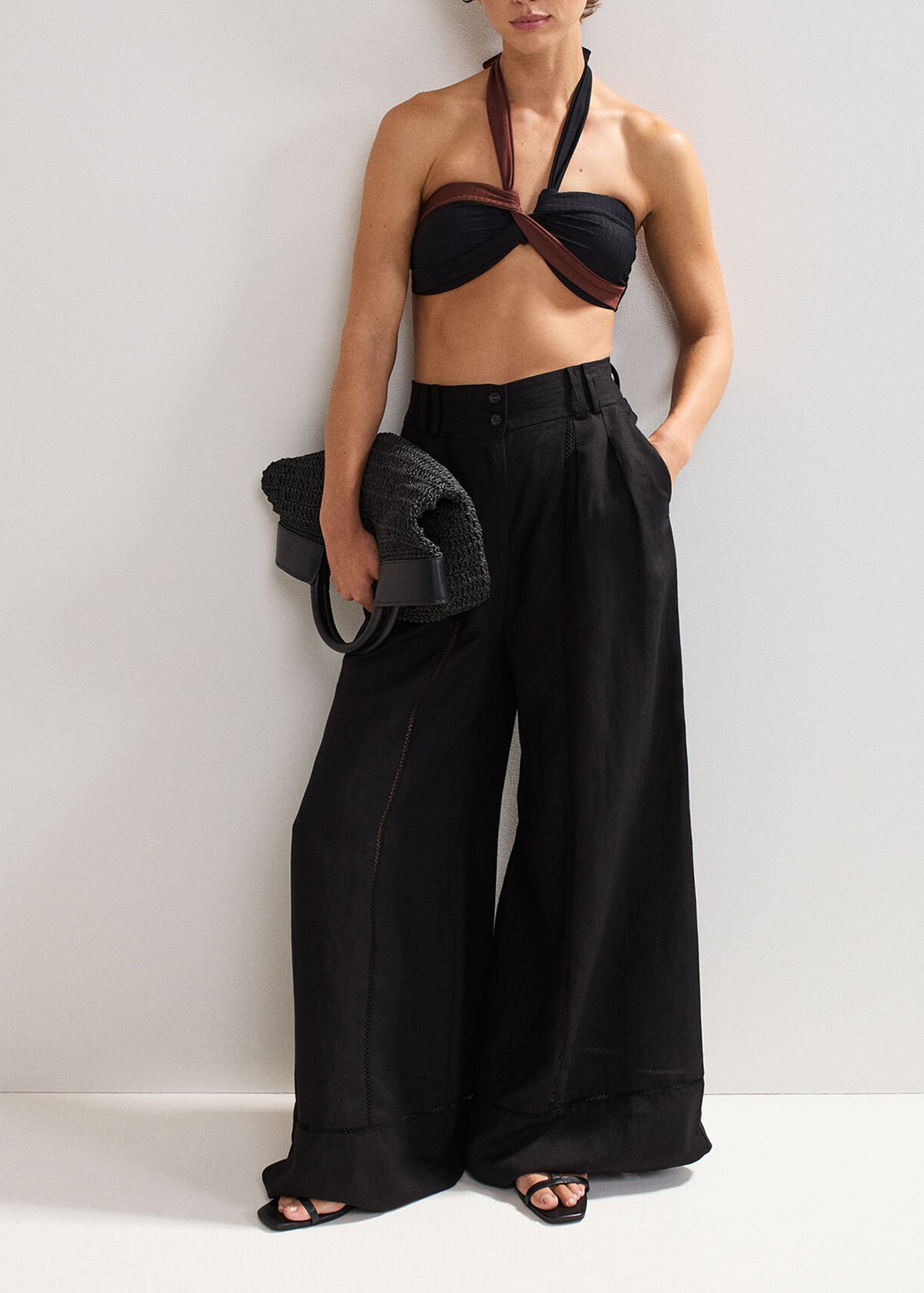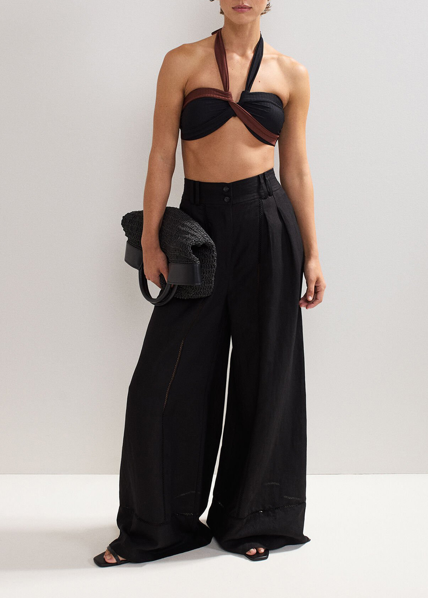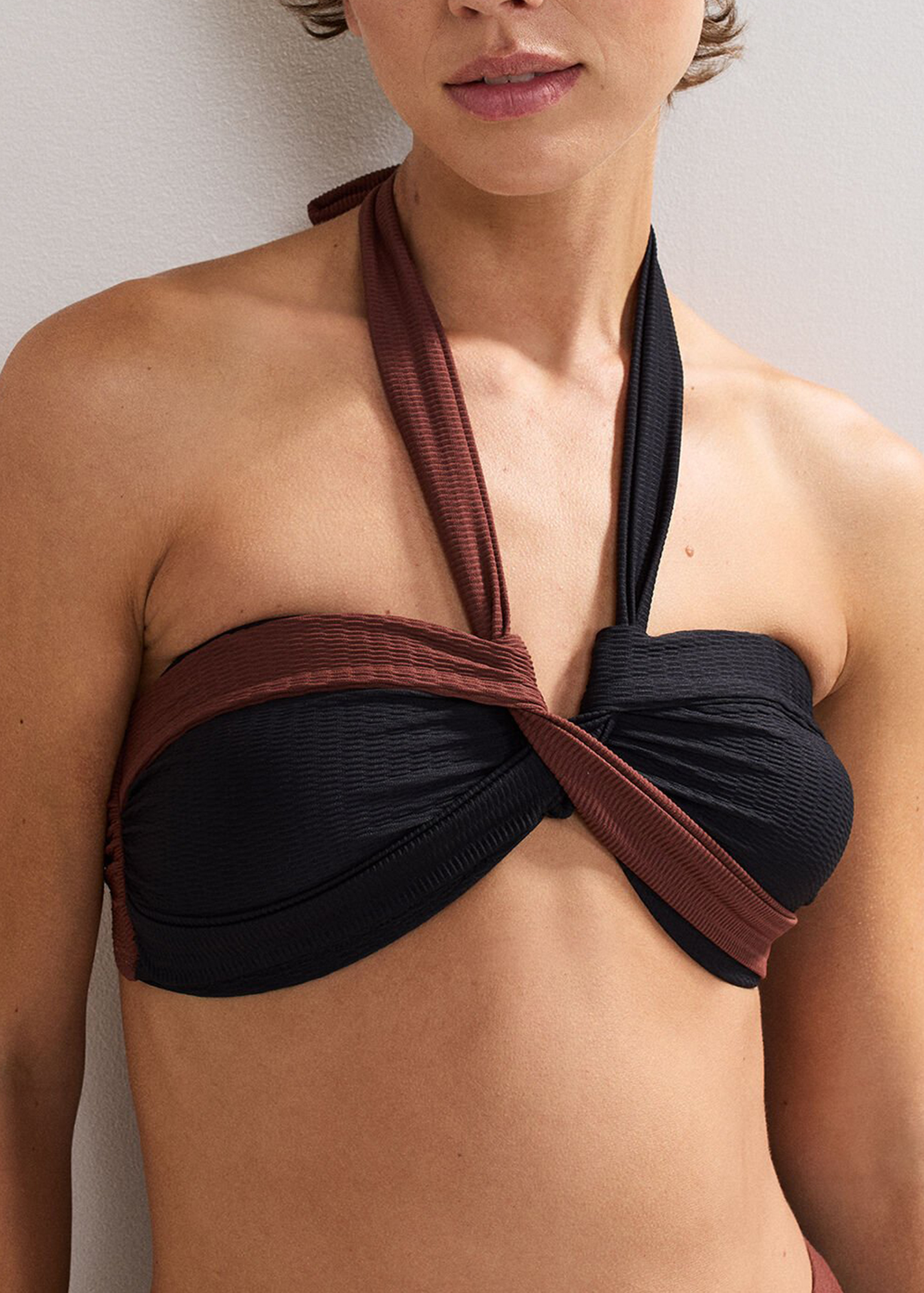 Our halterneck bikini is guaranteed to become a favourite in your holiday wardrobe. The contrasting black and brown colours and subtle texture provide a contemporary edge to create a feminine swim style you’ll reach for time and time again for holiday. Pair with our matching bikini bottoms for a coordinated look.