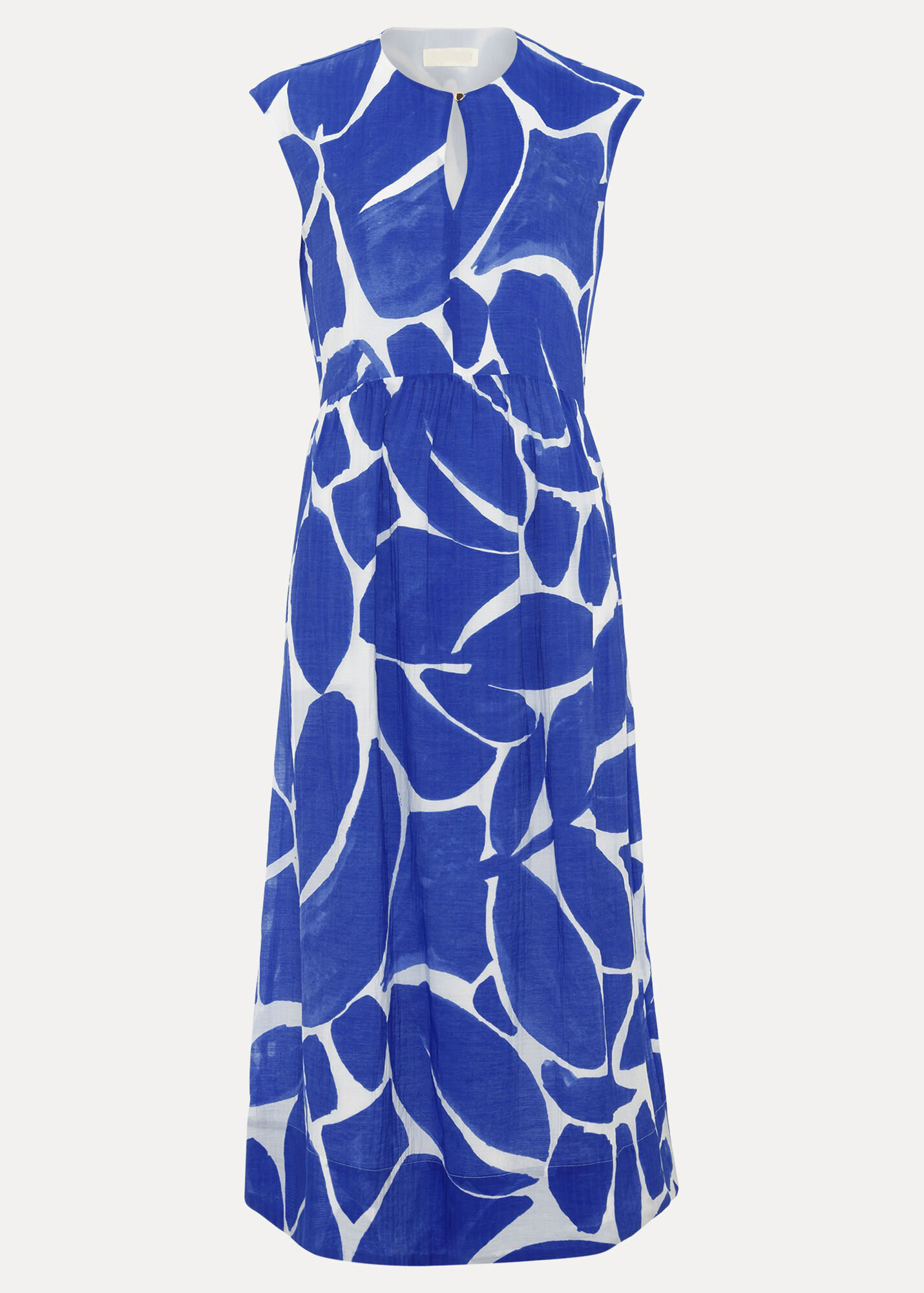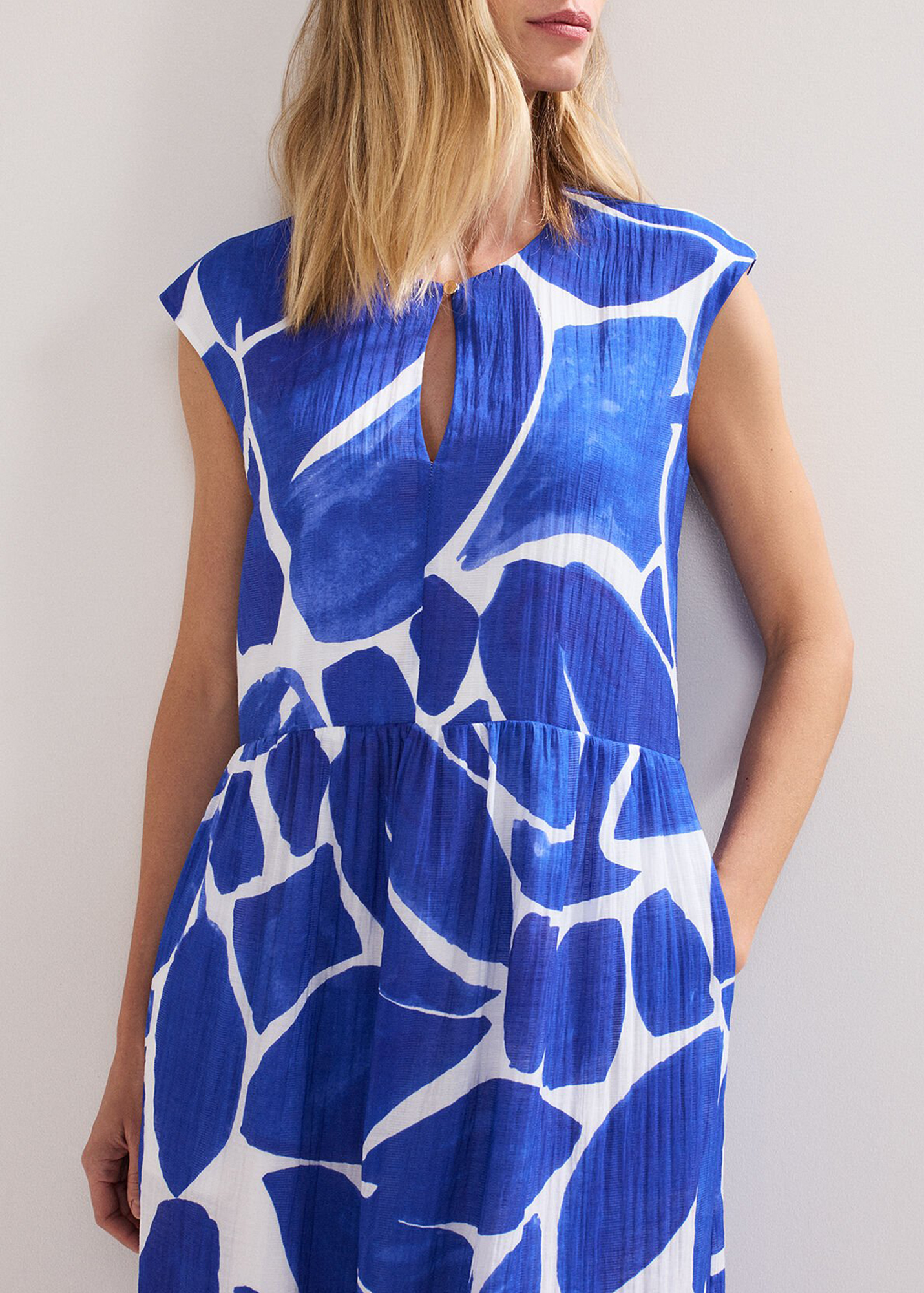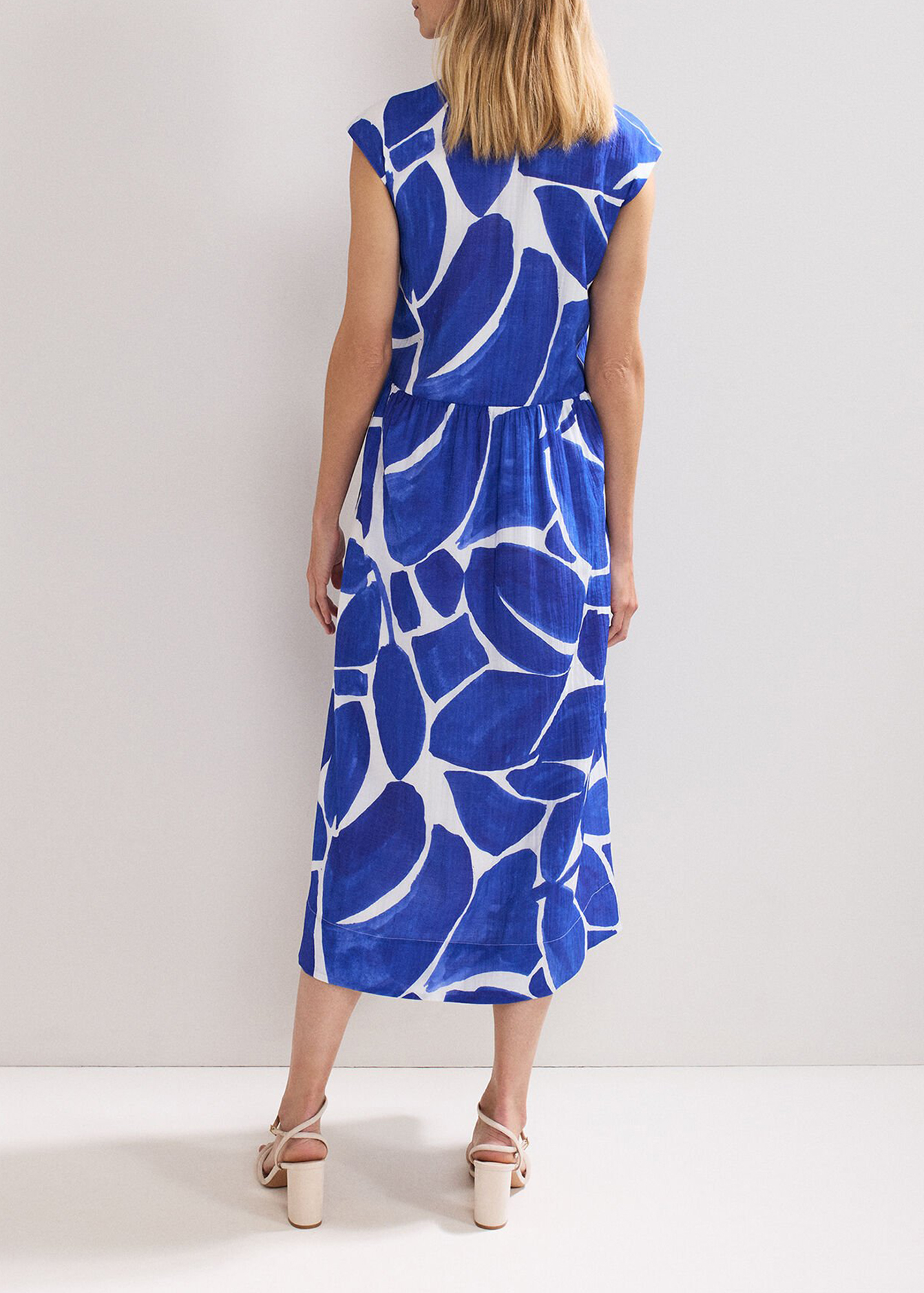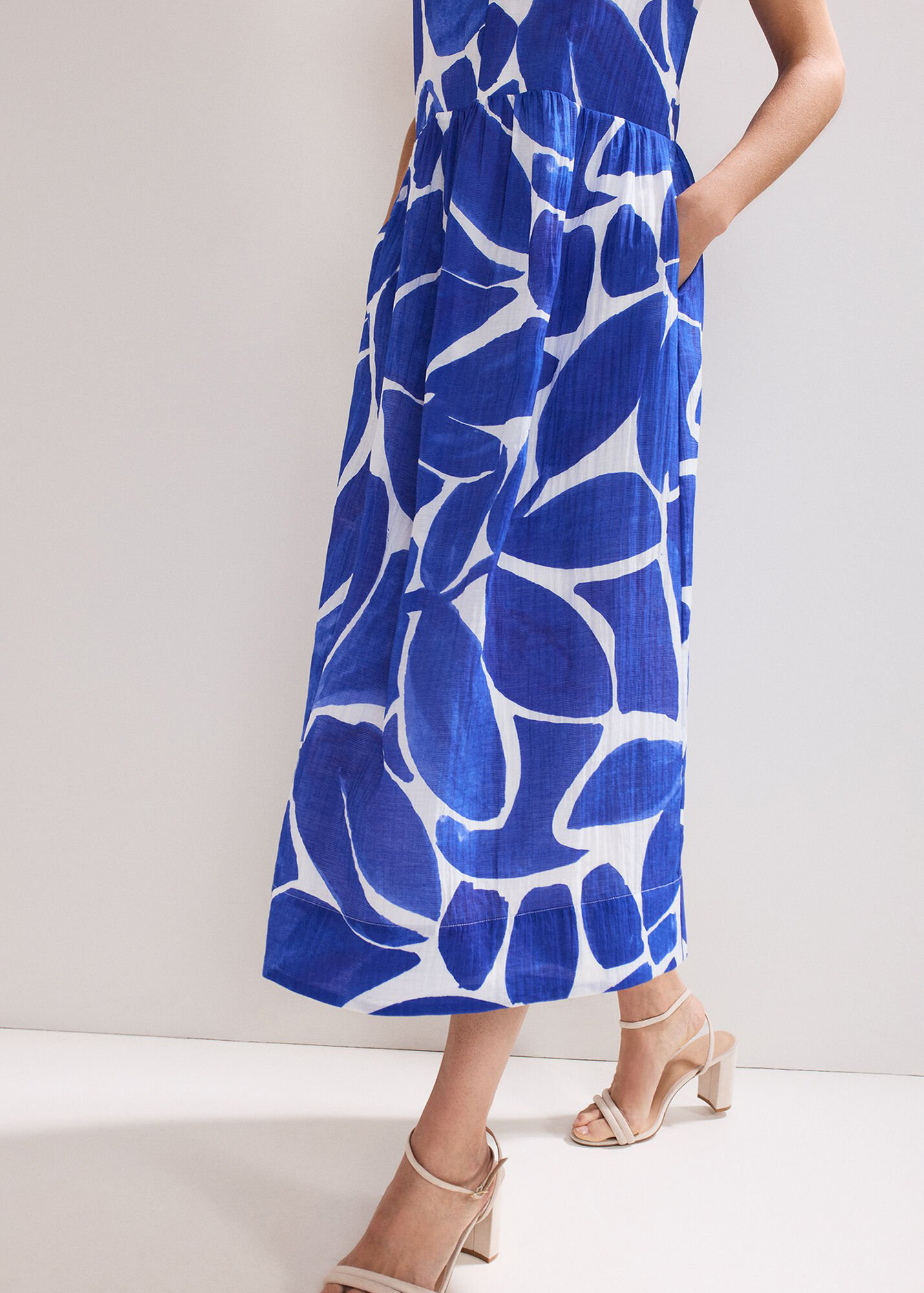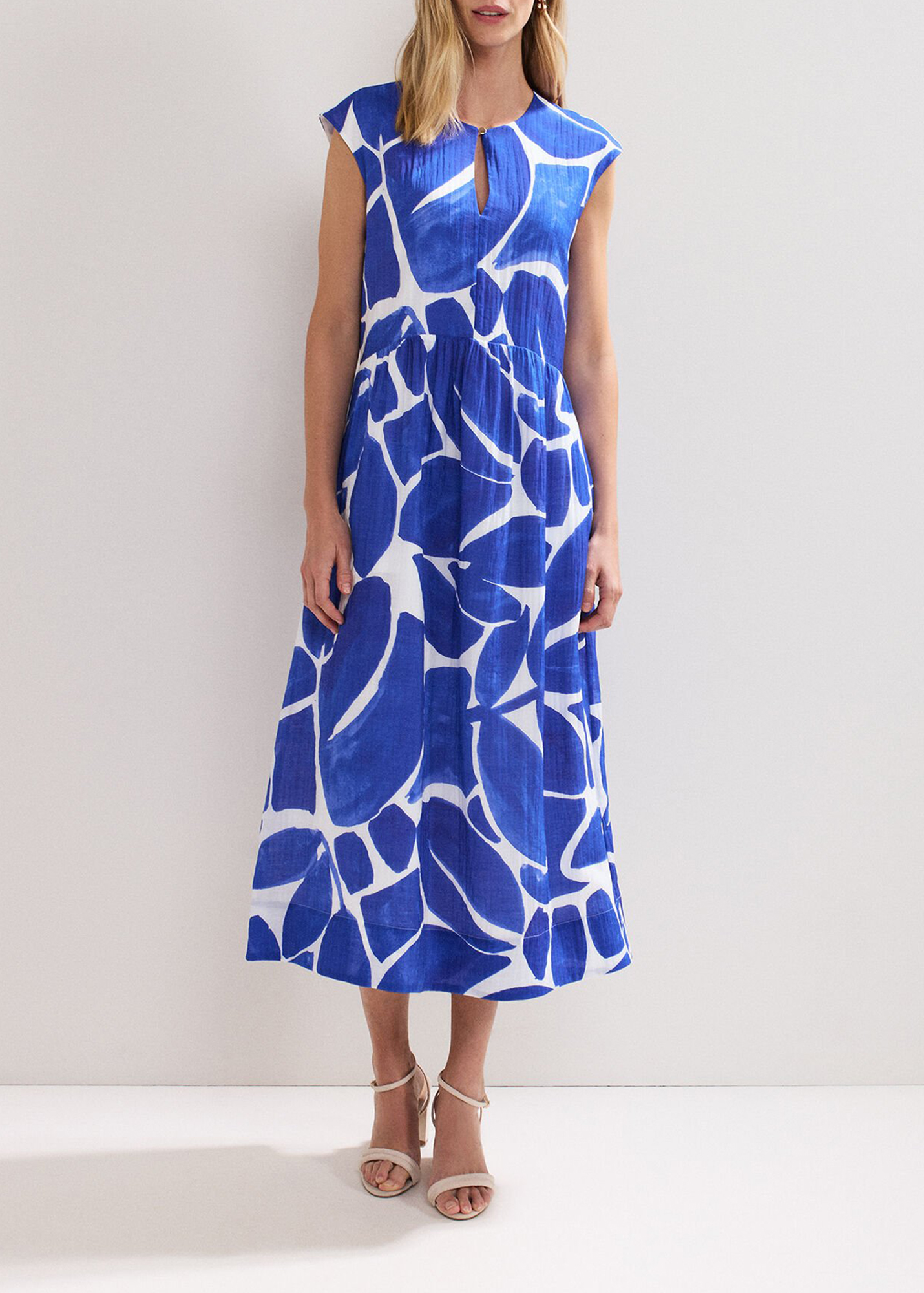 Let blue play a part in your new season wardrobe. Our relaxed midaxi style features an eye-catching leaf print for a contemporary edge, finished with a simple button detail at the neckline Styled with your favourite shoes and accessories this dress has effortless day-to-night versatility.