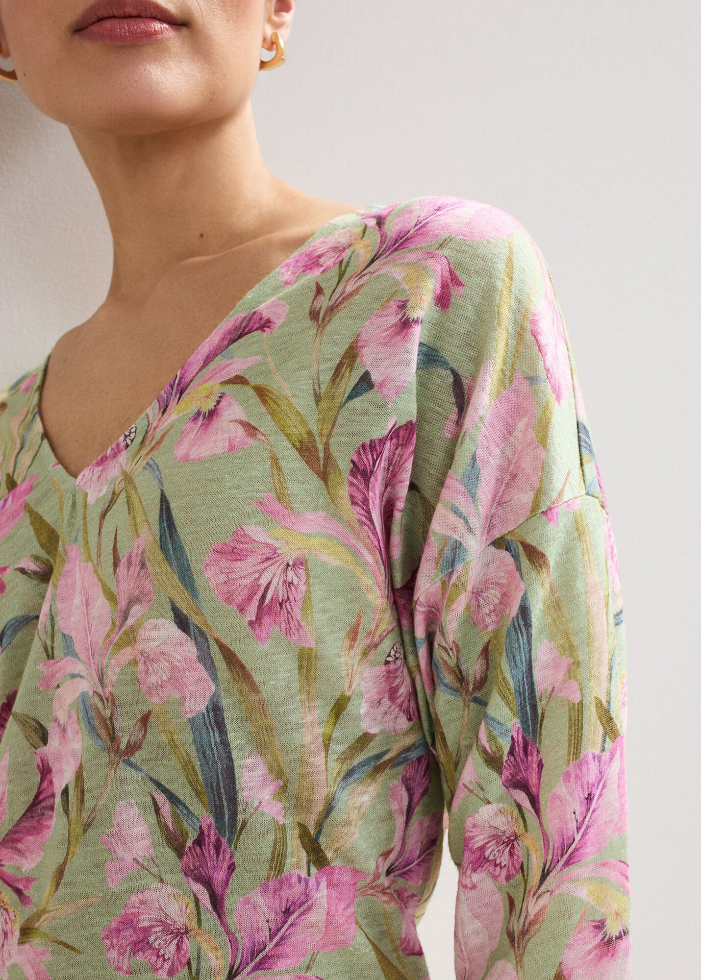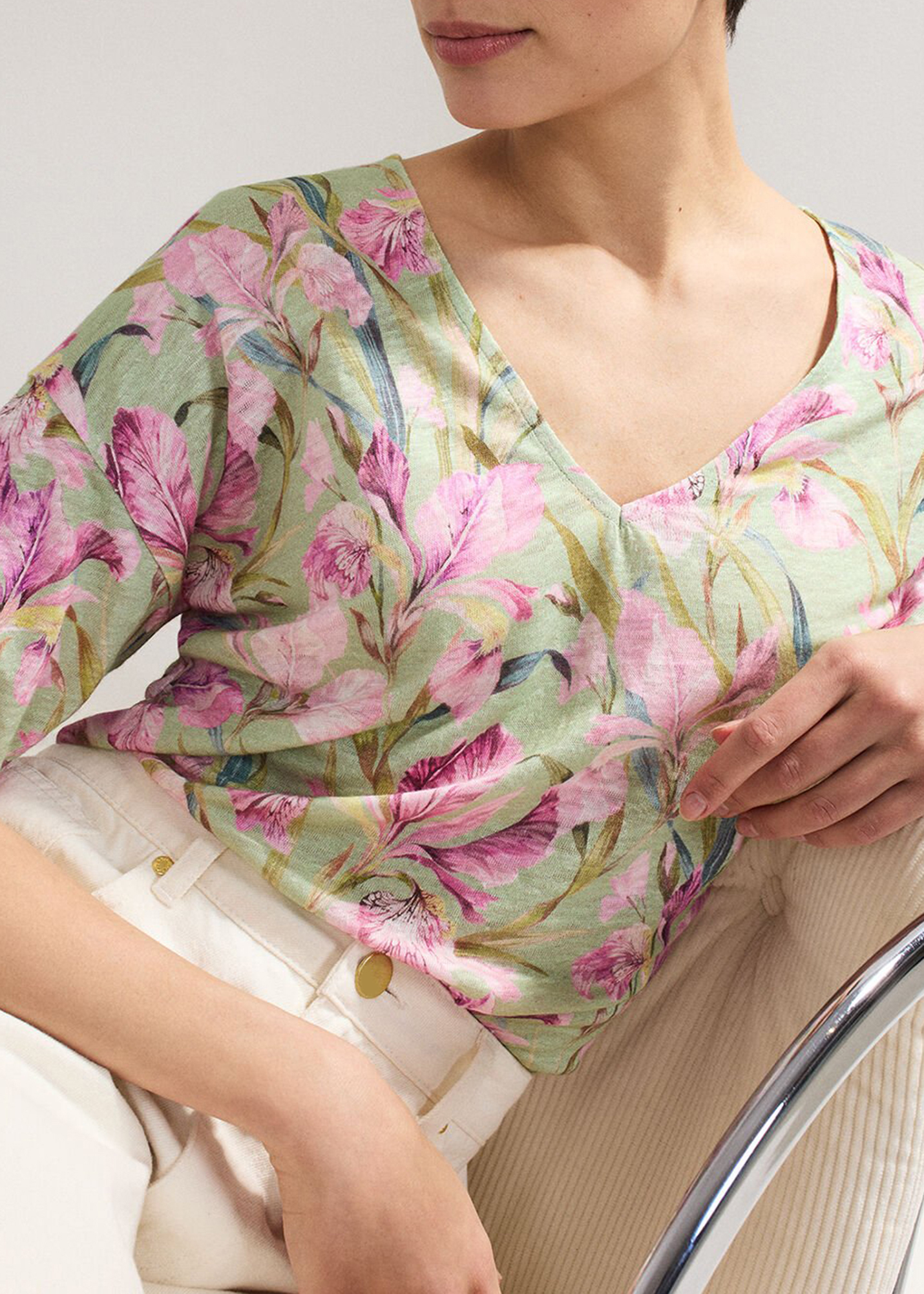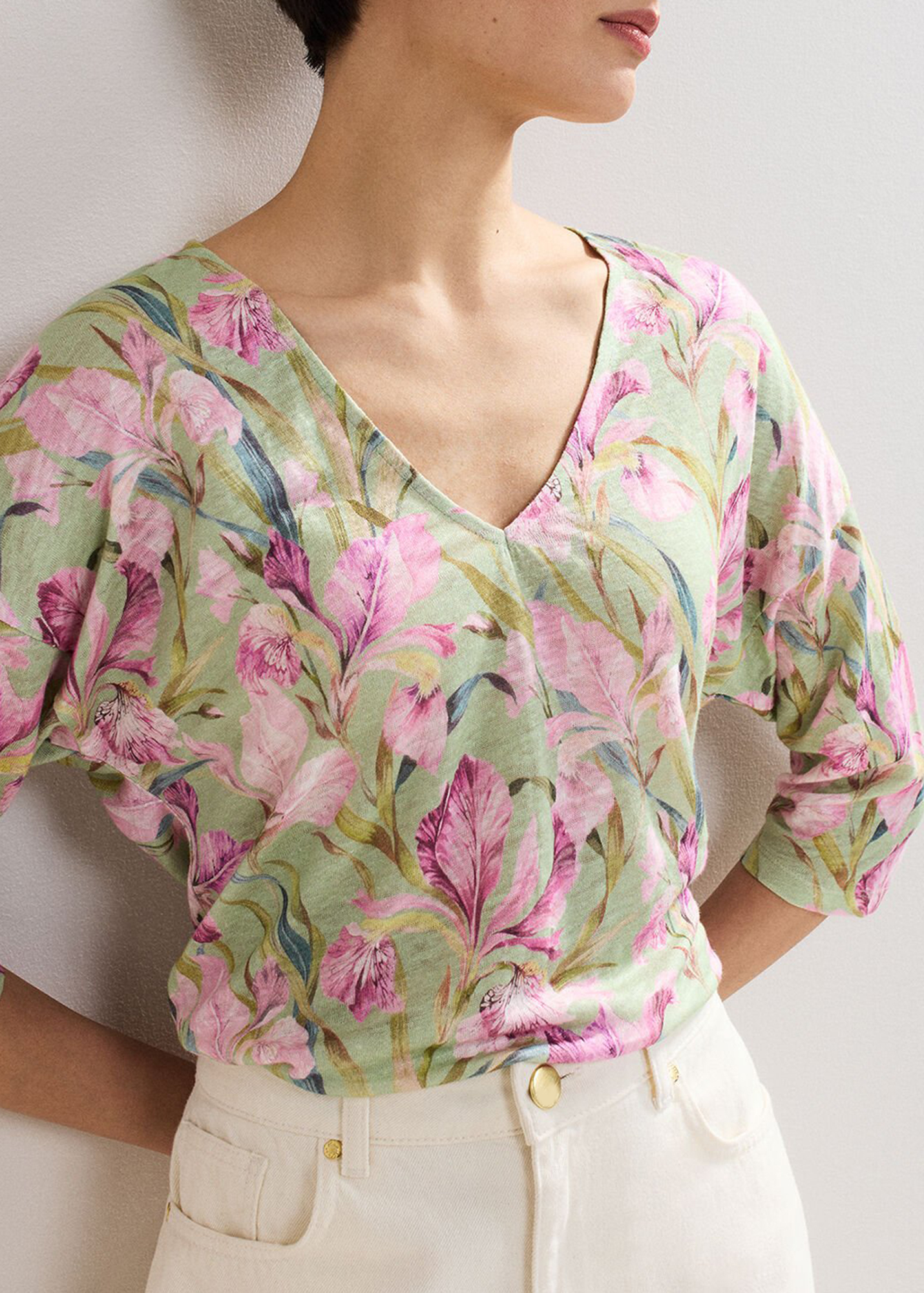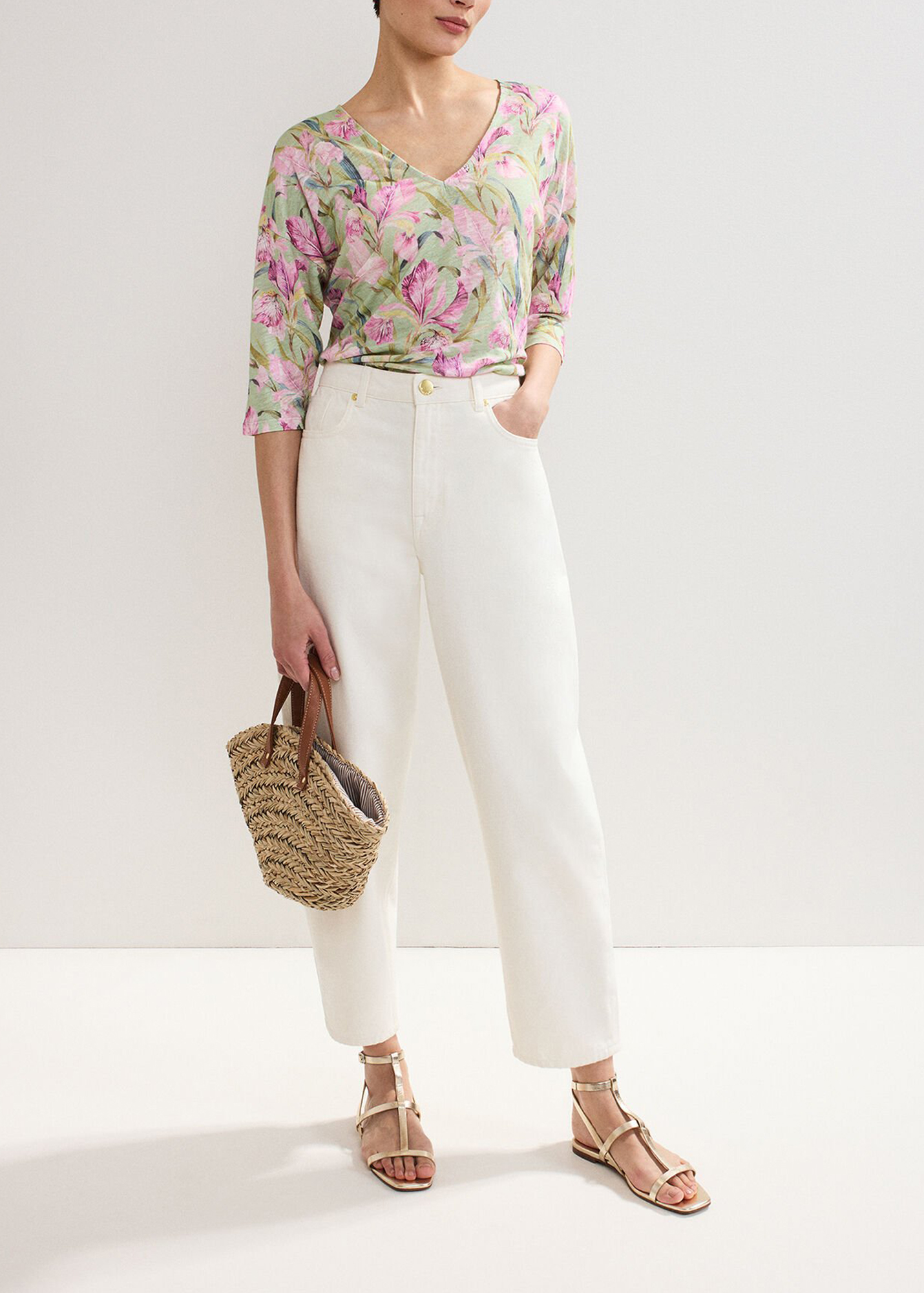 Our 100% linen top will become a staple in your wardrobe. With a contemporary V-neckline and cropped sleeves this lightweight style looks great with your favourite denim and a pair of sandals.
