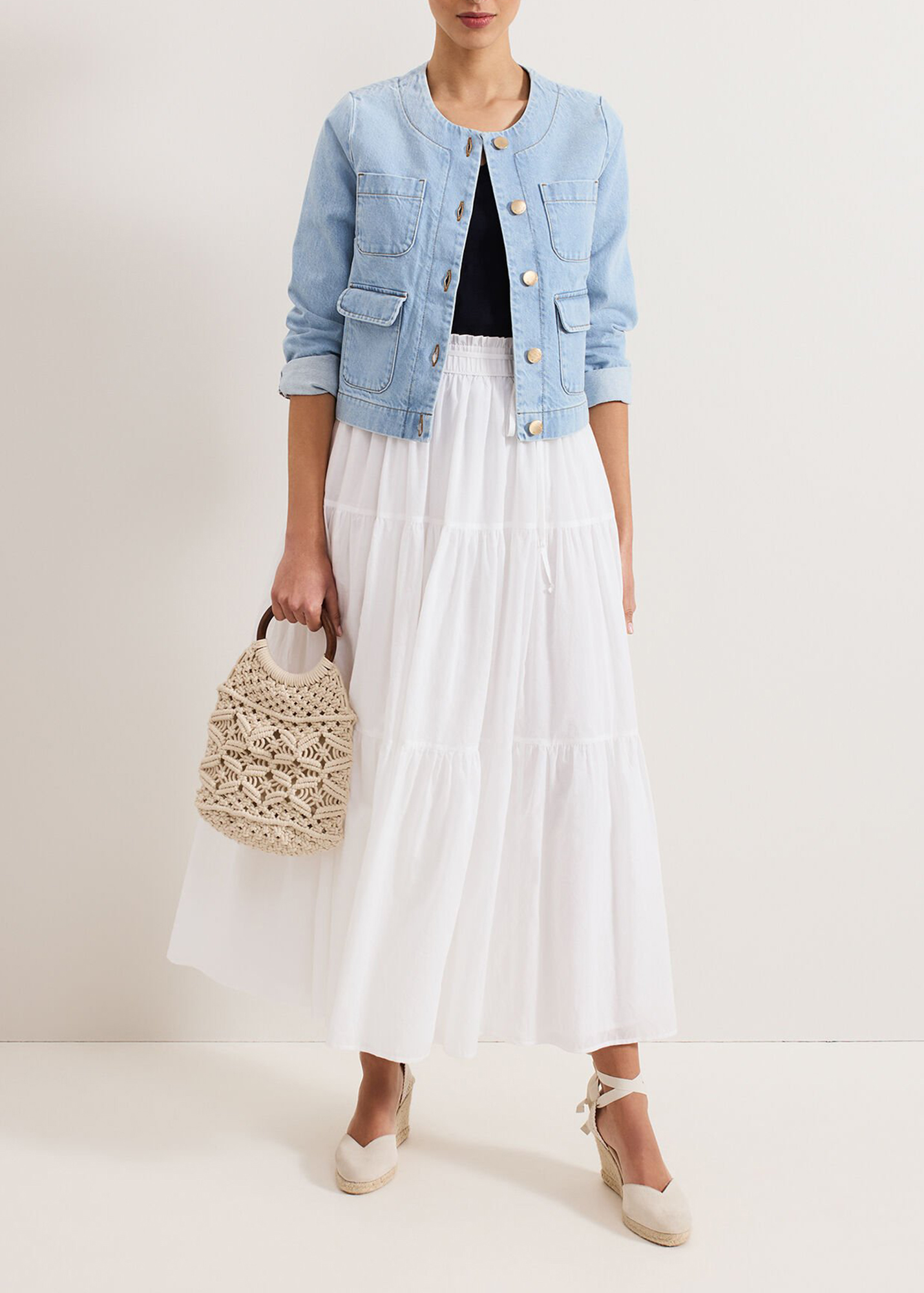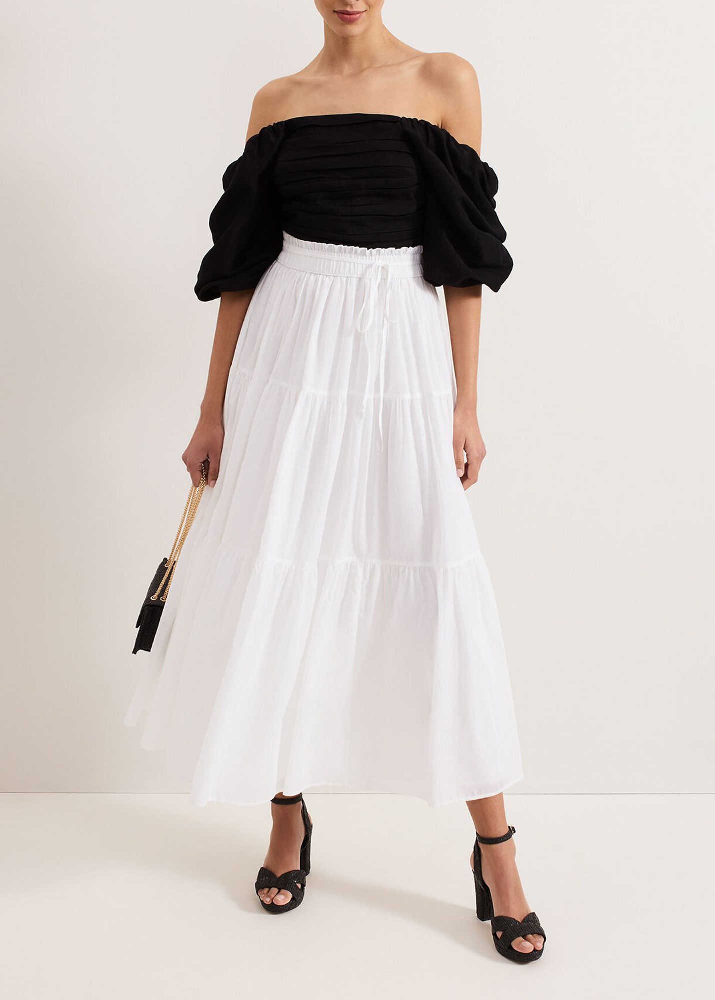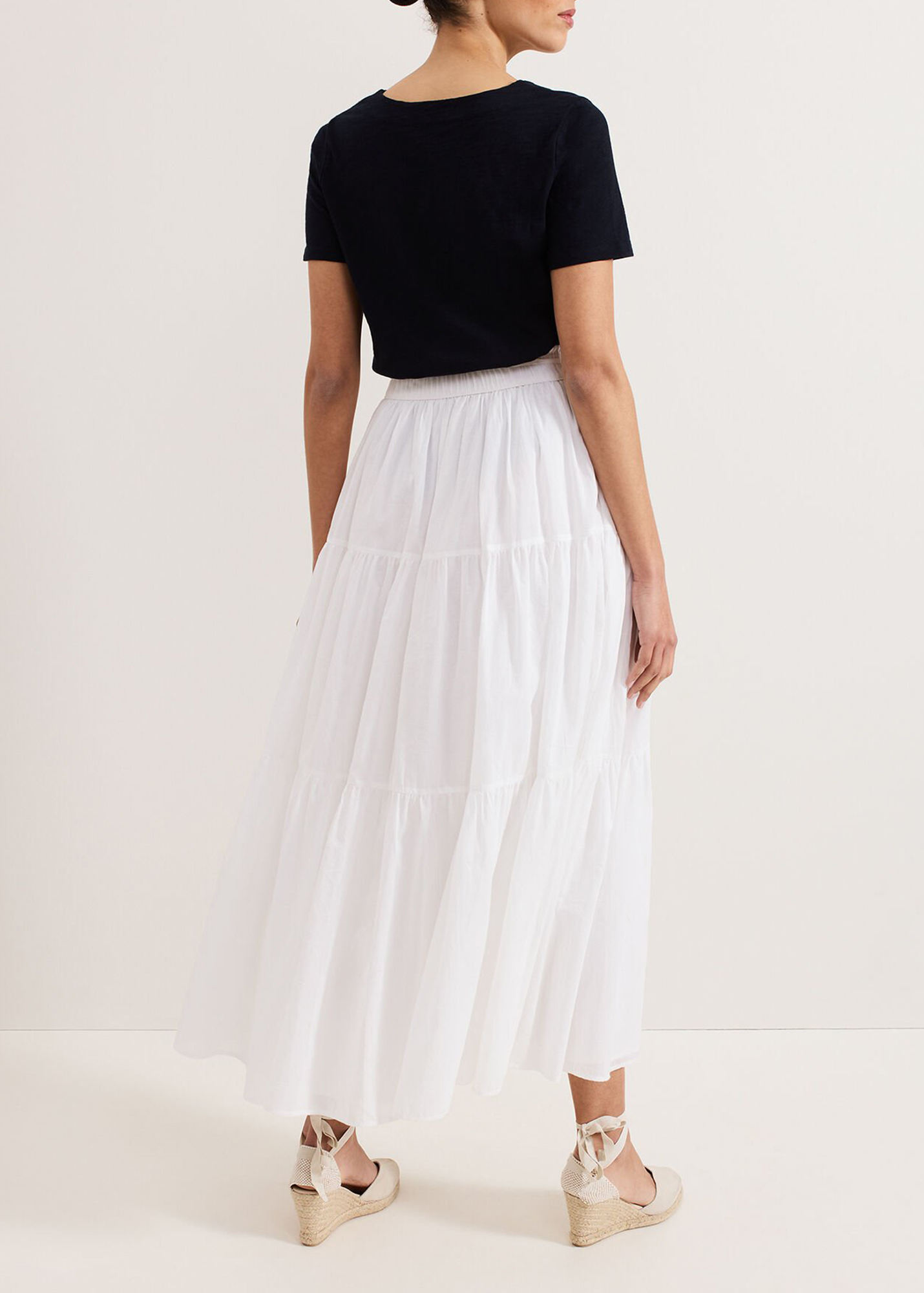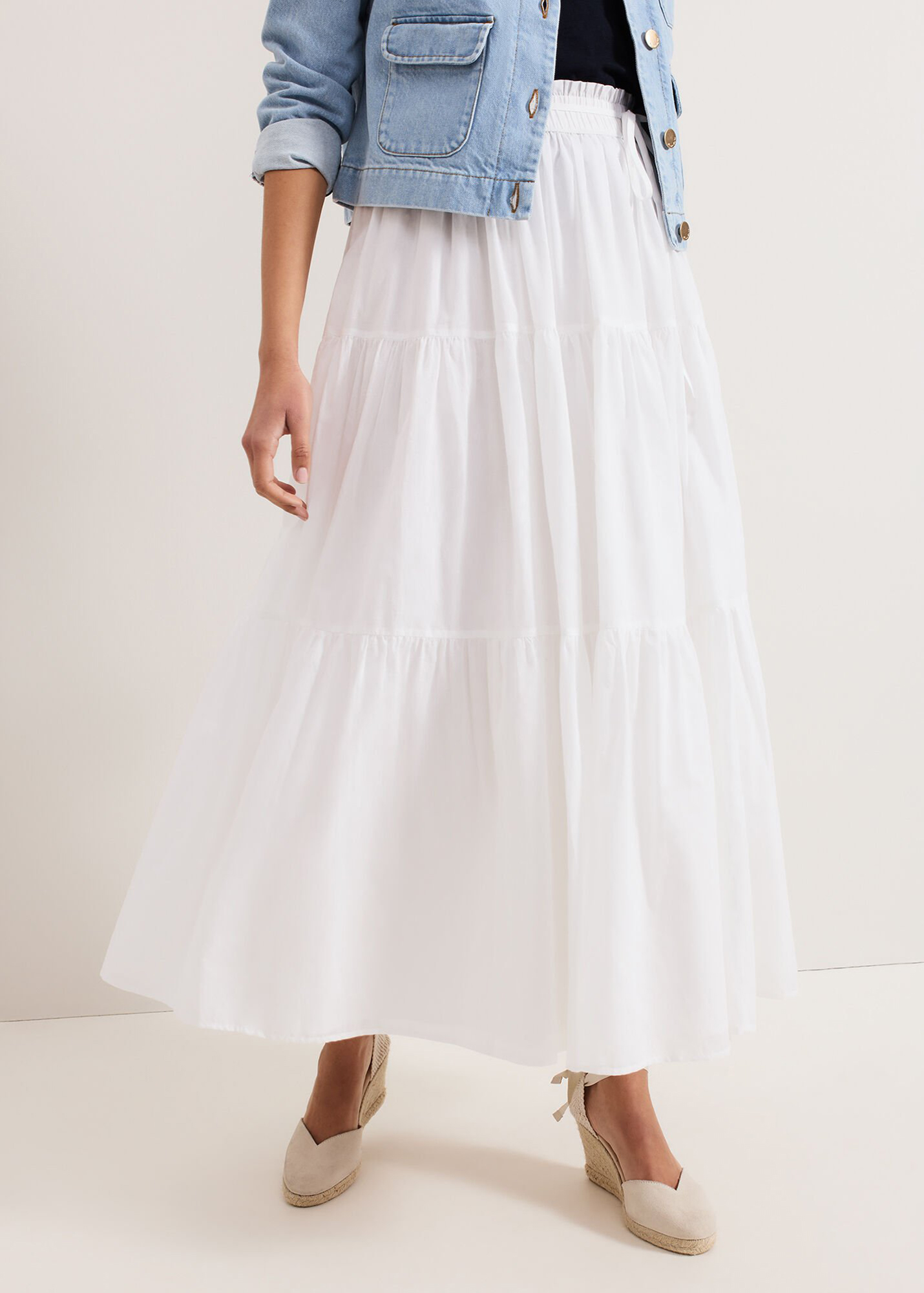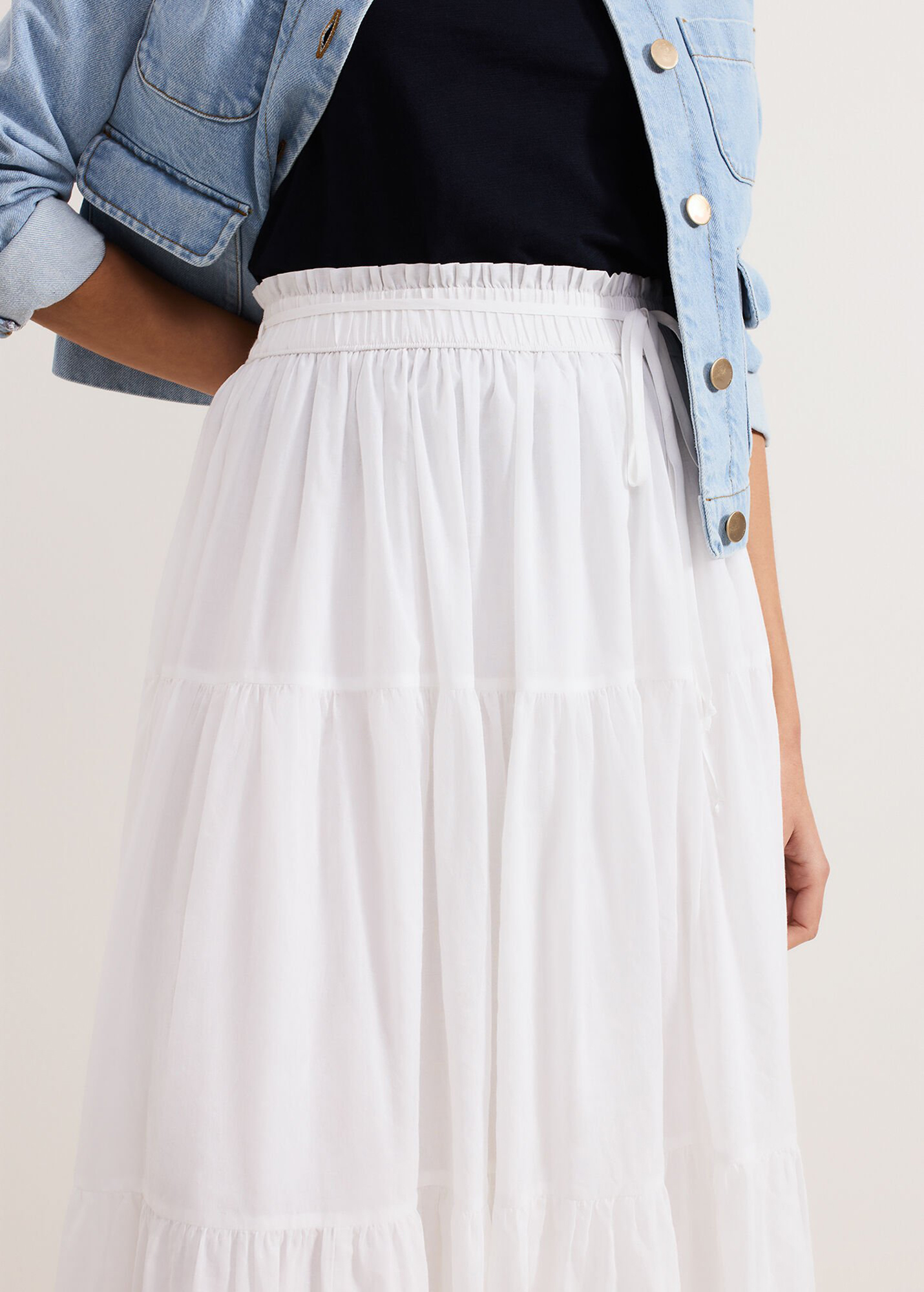 Our white cotton skirt is a must-have for your wardrobe. Flowing to a full maxi length, soft ruching and tiered detailing create a voluminous silhouette for fluid movement. Paired with your favourite accessories this lightweight style is perfect for day to night wear on warmer days.