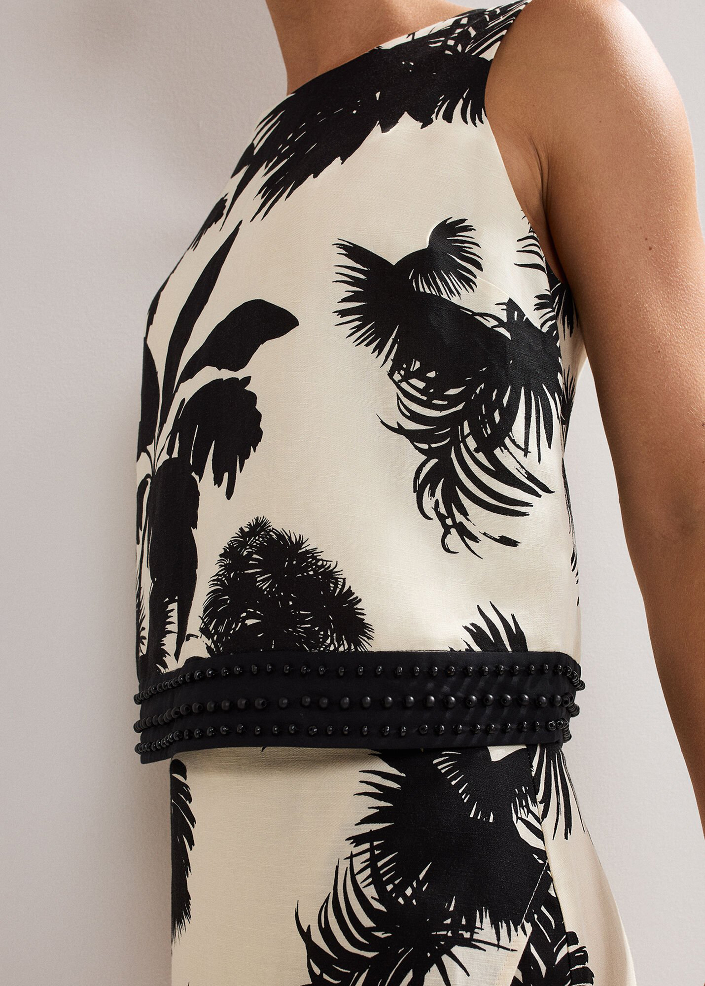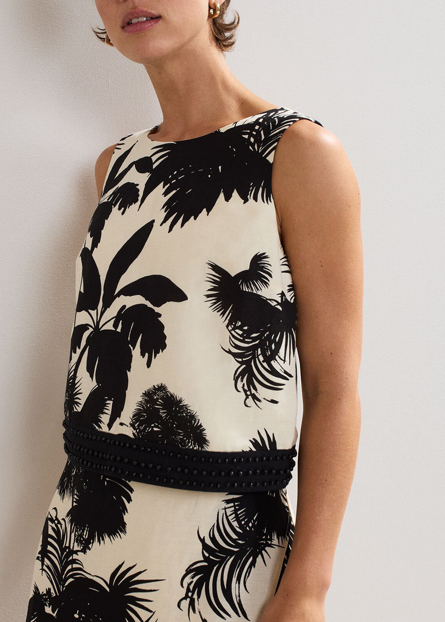 Embrace bold dressing this season with our tropical print top. Crafted in our new linen blend designed to minimise creasing and embellished with contemporary beading at the hem we love this style for holidays.