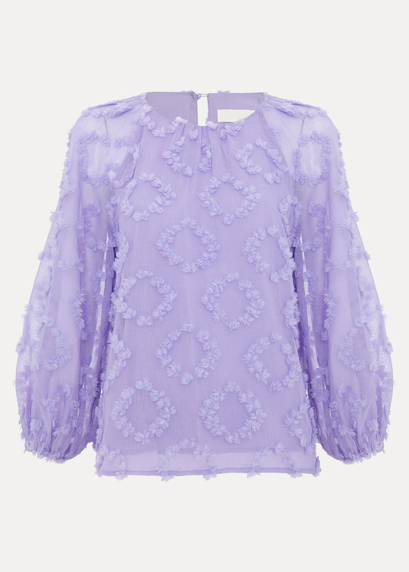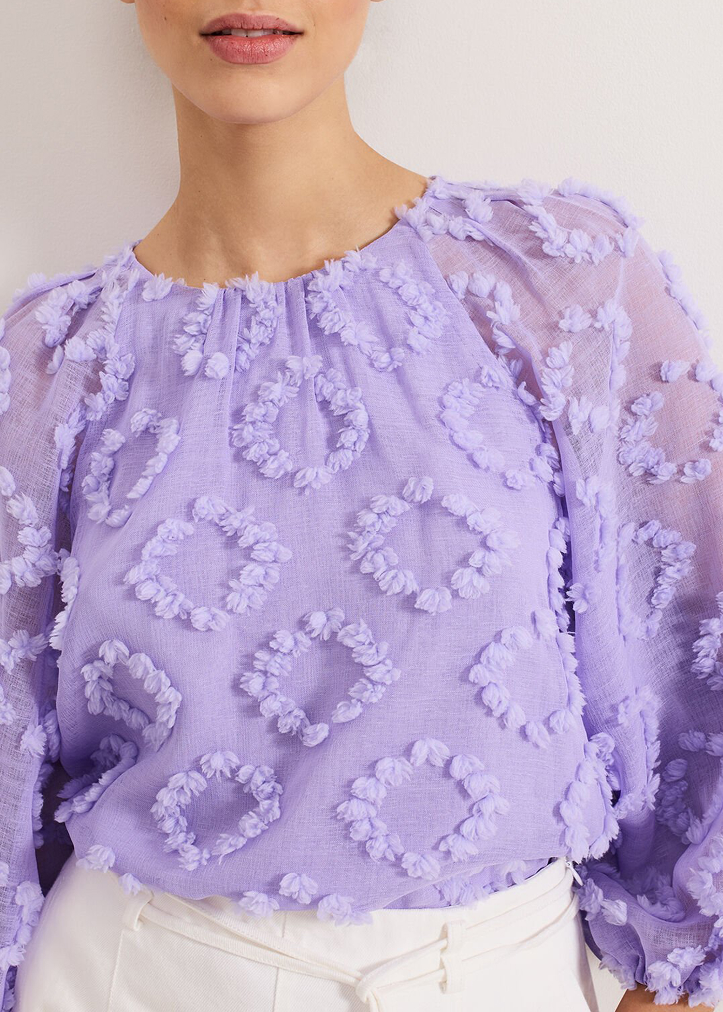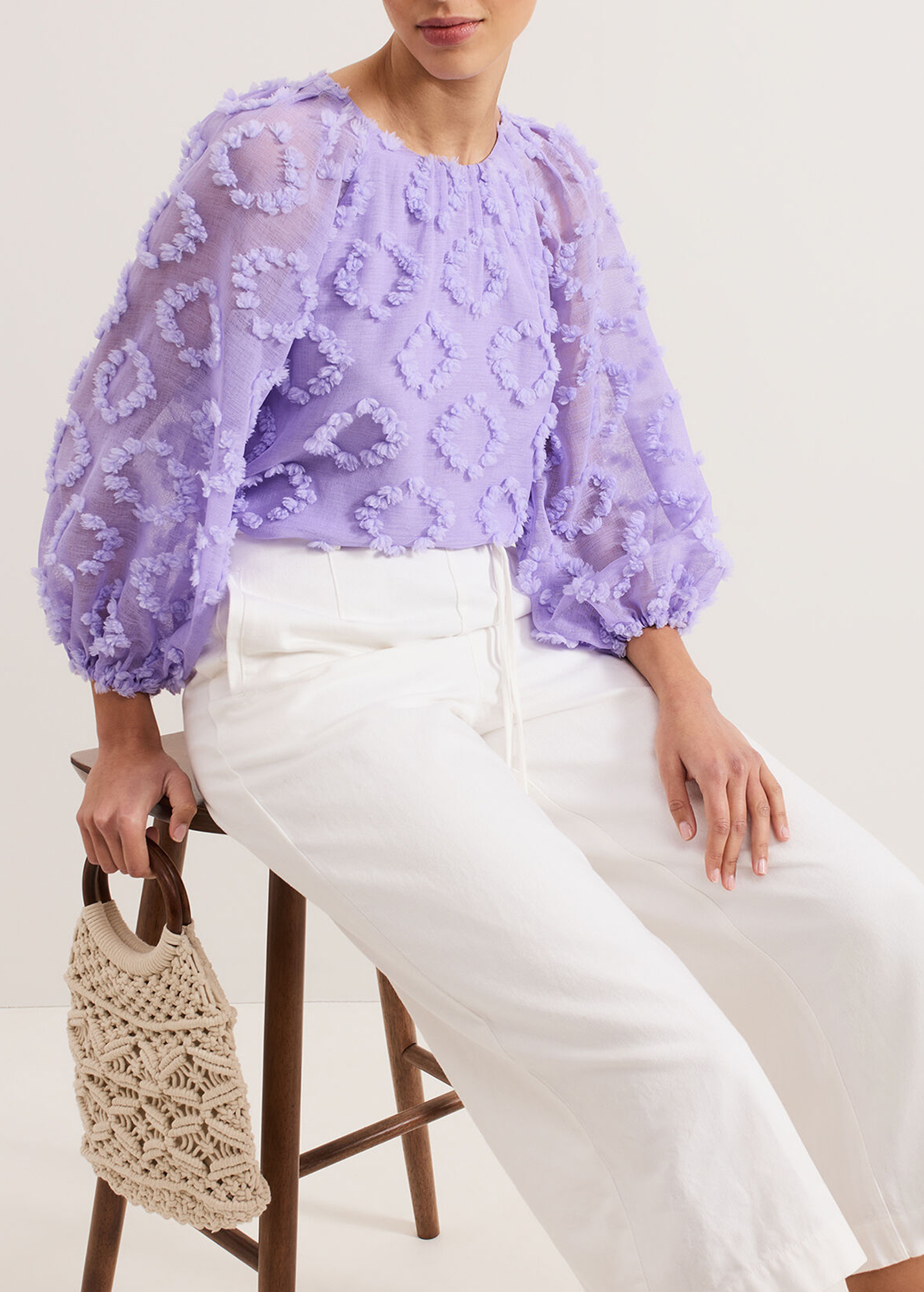 Cinched cuffs add volume to the semi-sheer blouson sleeves for an elevated look whilst a textured diamond design gives this blouse a contemporary edge. Style with your favourite denim and accessorize with flats or heels for a day to night look.